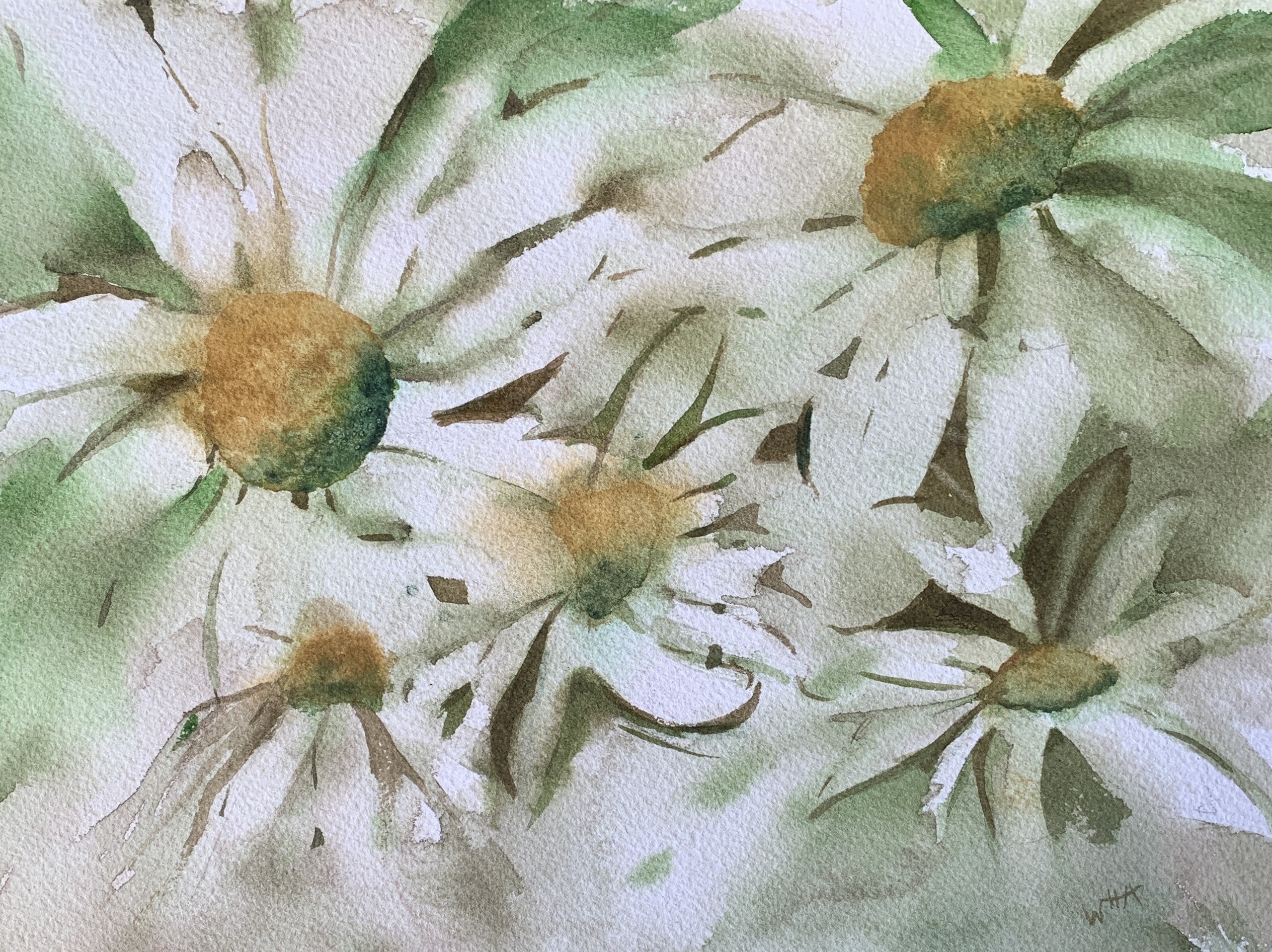 Expressieve aquarel van een bosje madeliefjes