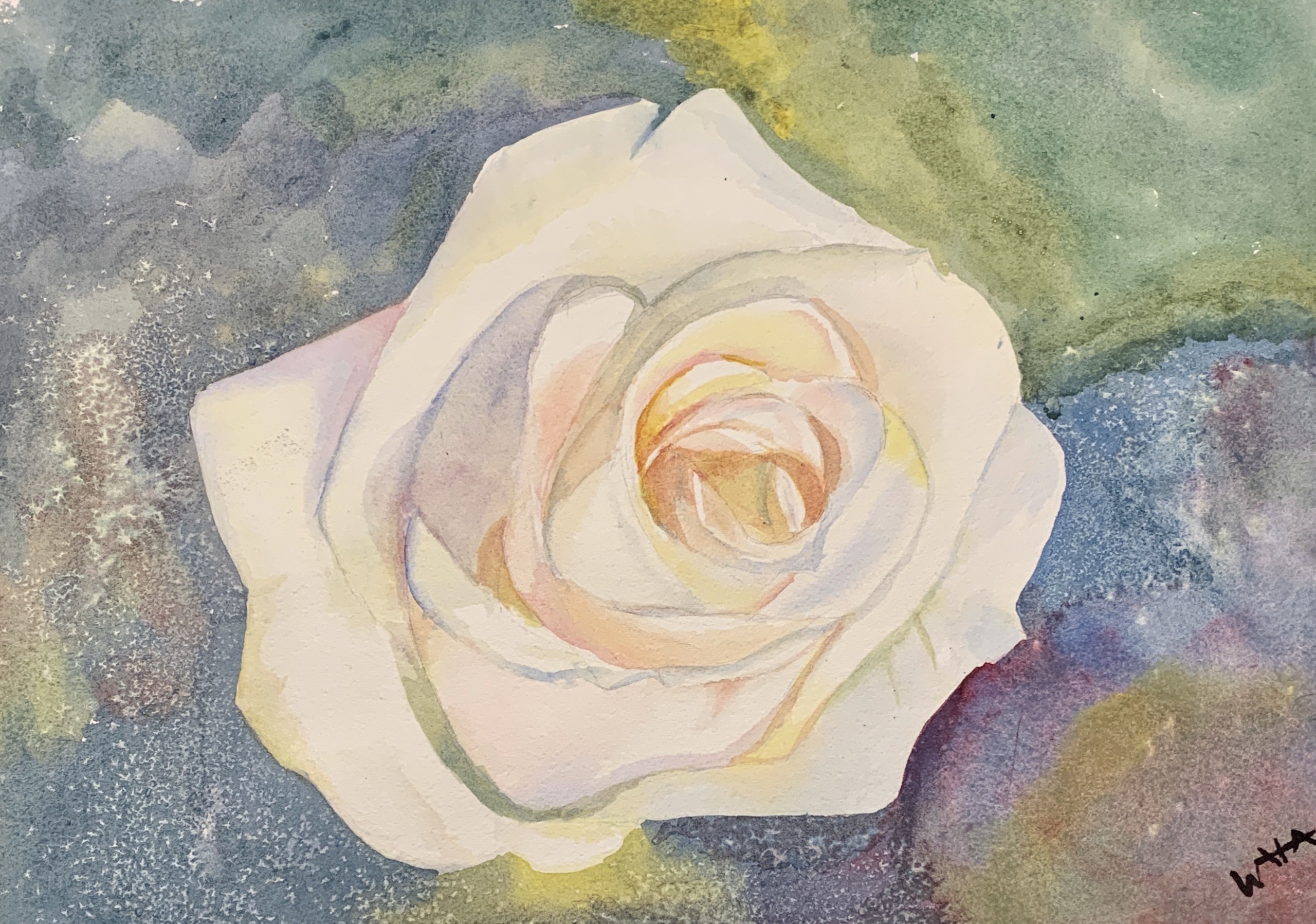 Witte roos op een kleurrijke achtergrond