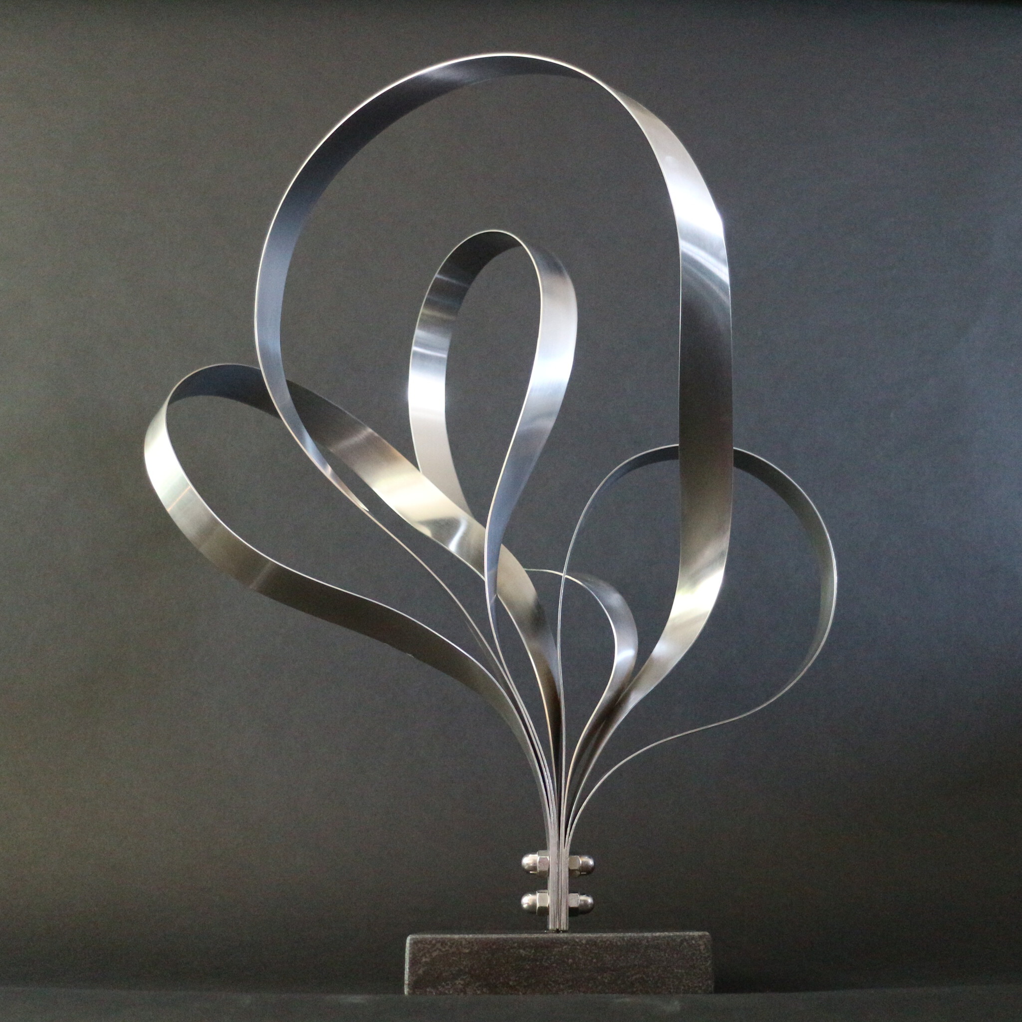 Dit kunstwerk symboliseert de verwarring die soms door allerlei omstandigheden kan ontstaan. Alles loopt door elkaar en je hebt moeite de diverse stromingen van elkaar te onderscheiden. Alles kronkelt en je hebt geen idee welke richting het uit gaat. Pas na enige tijd zie je dat het beeld ook rust kan uitstralen. Het sculptuur is gemaakt van 3 cm, 1 mm dik RVS strip. Het is gemonteerd op een hardstenen ondergrond van ca 15 x 15 cm.