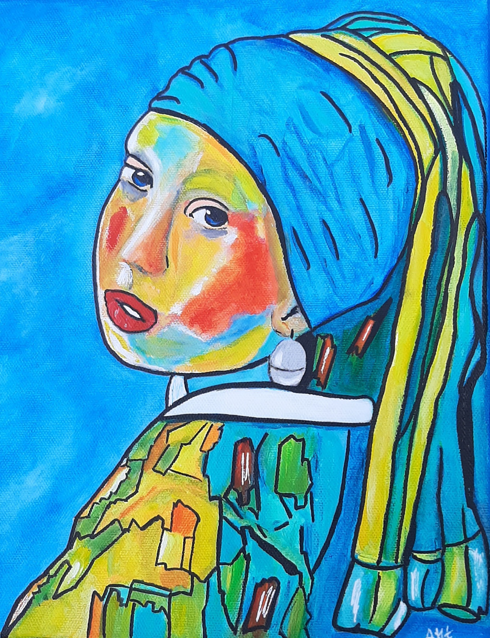 Schilderij meisje met de parel (Johannes Vermeer) abstract
