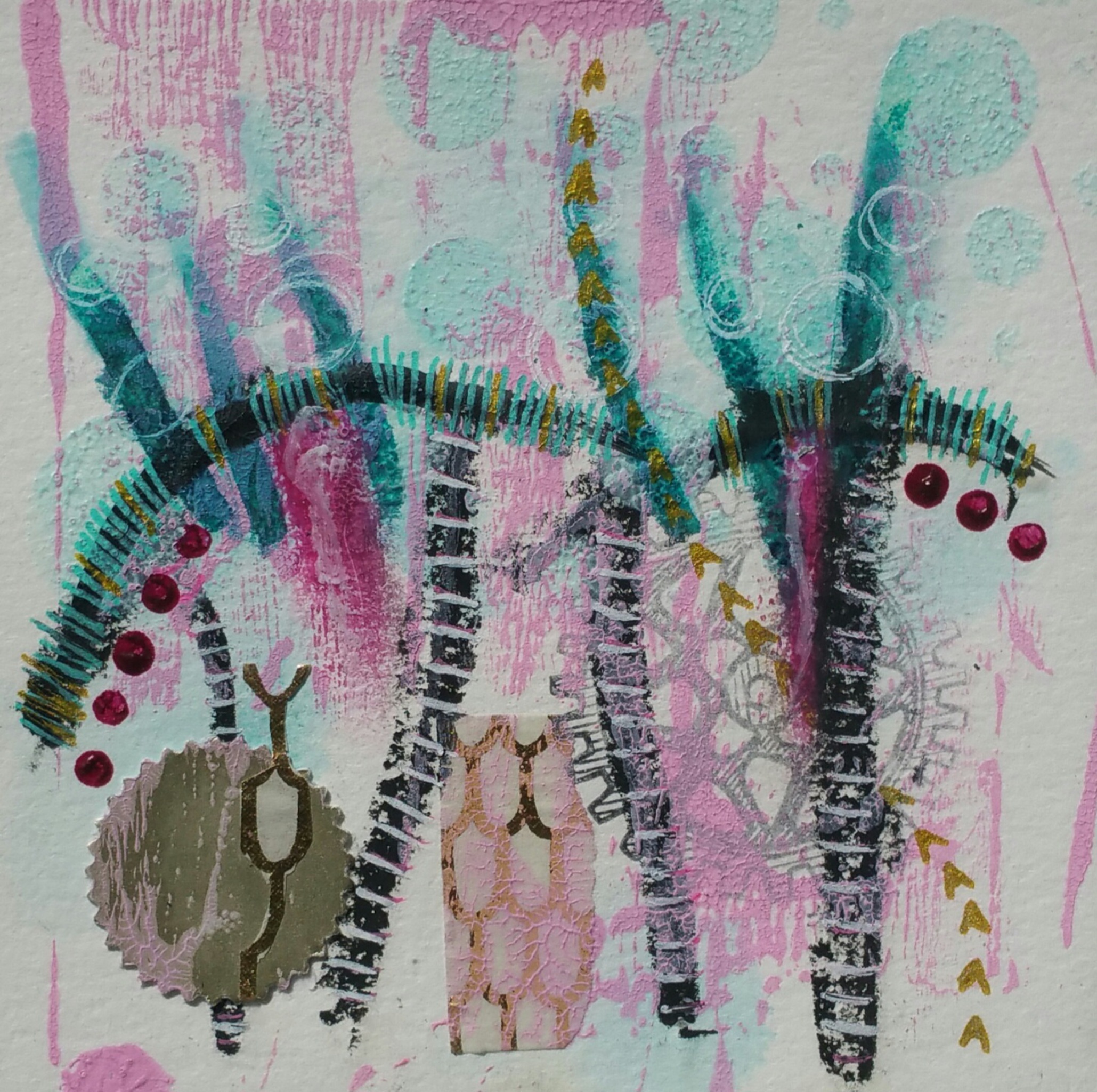 Sylvia houdt ervan om kleurrijk te werken en te experimenteren qua techniek en materiaal. Haar stijl is doorgaans intuïtief en abstract. Nat in nat werken met ecoline en acrylinkt heeft haar voorkeur.