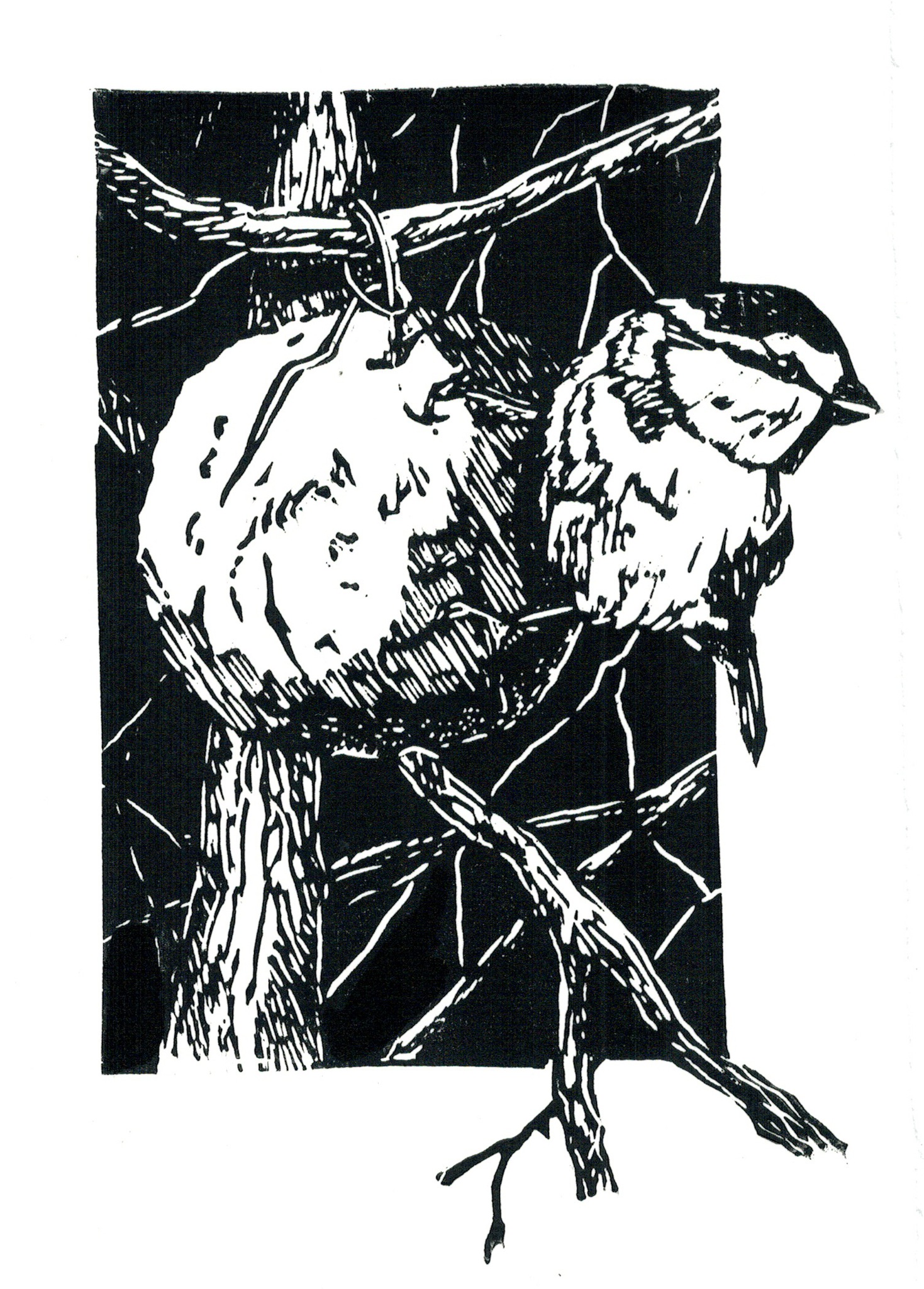 Wit Zwart Vogel Linosnede