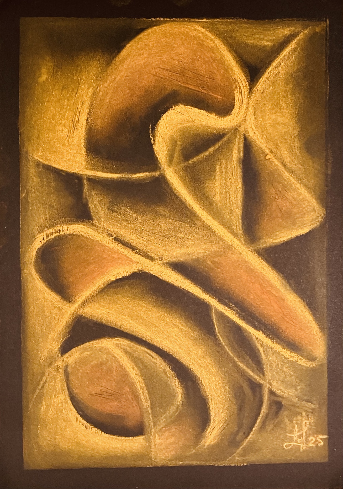 Een abstraherend geheel van vormen die een harmonisch spel met elkaar spelen in vorm en beweging.