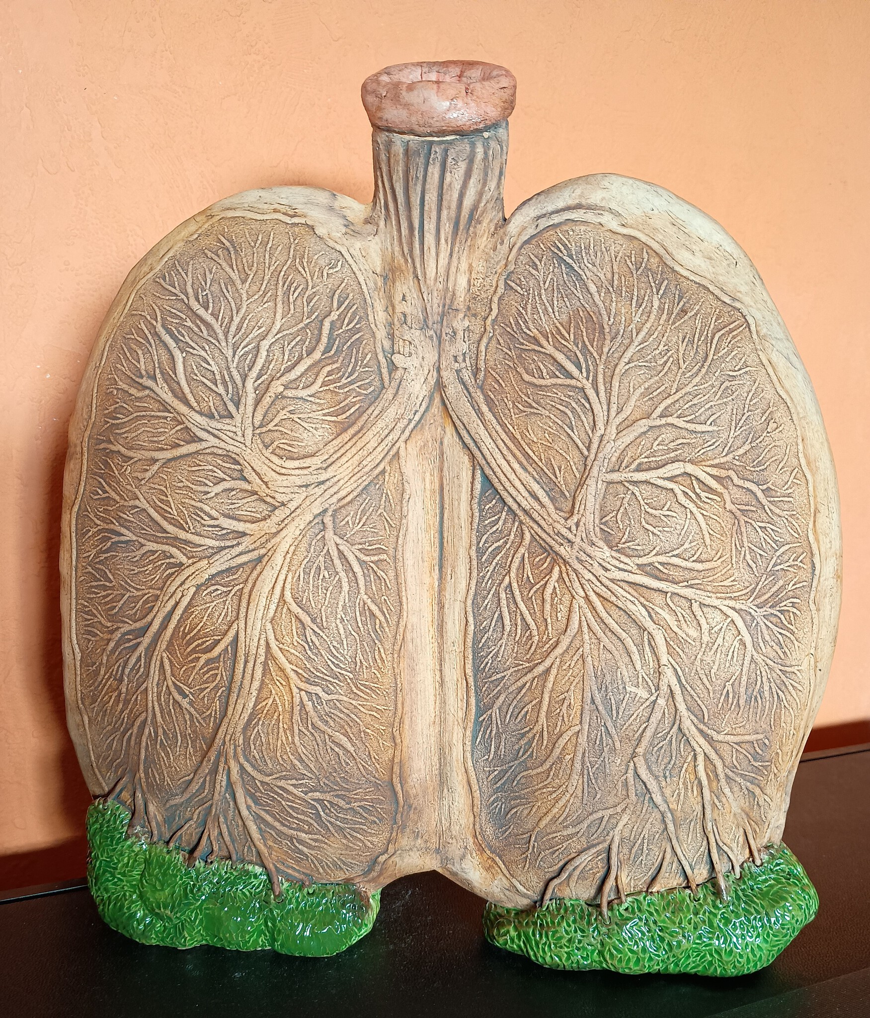 Keramiek : organische handgevormde objecten dmv slabs afgedrukt op linosnede.