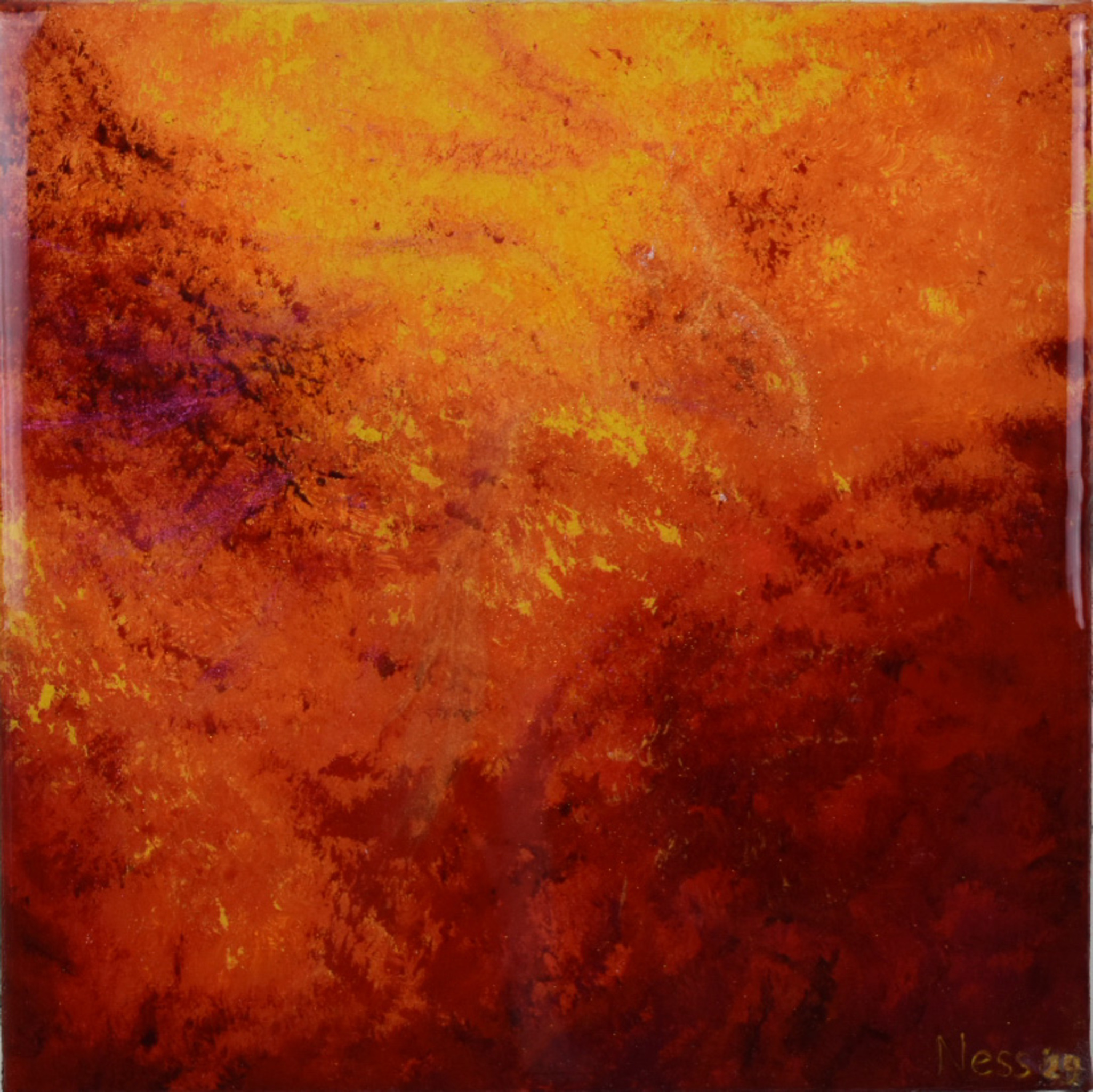 Olieverf, pigmenten en epoxy op doek