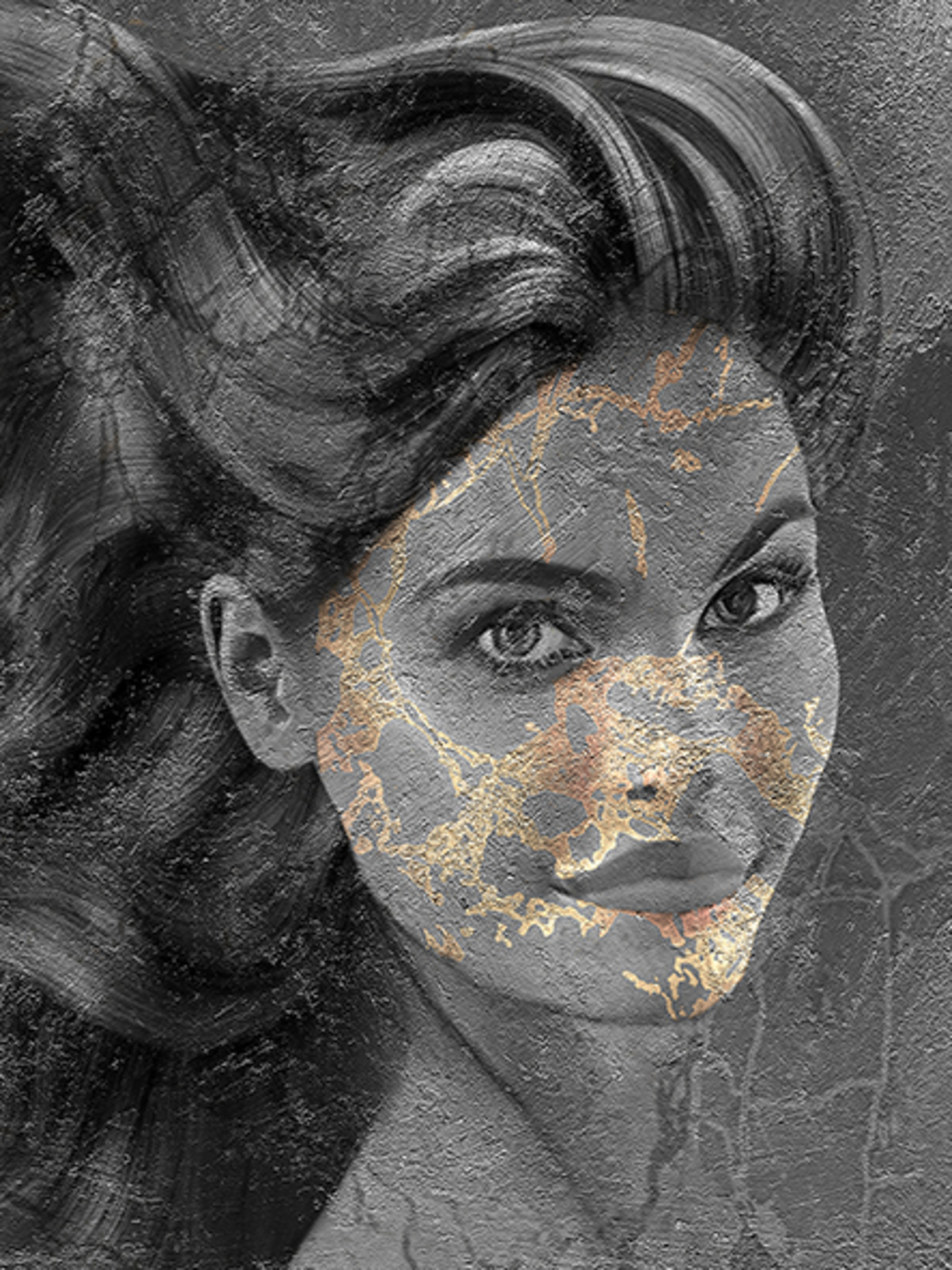Portret Digitaal Abstraherend Goudkleur Zwart-wit