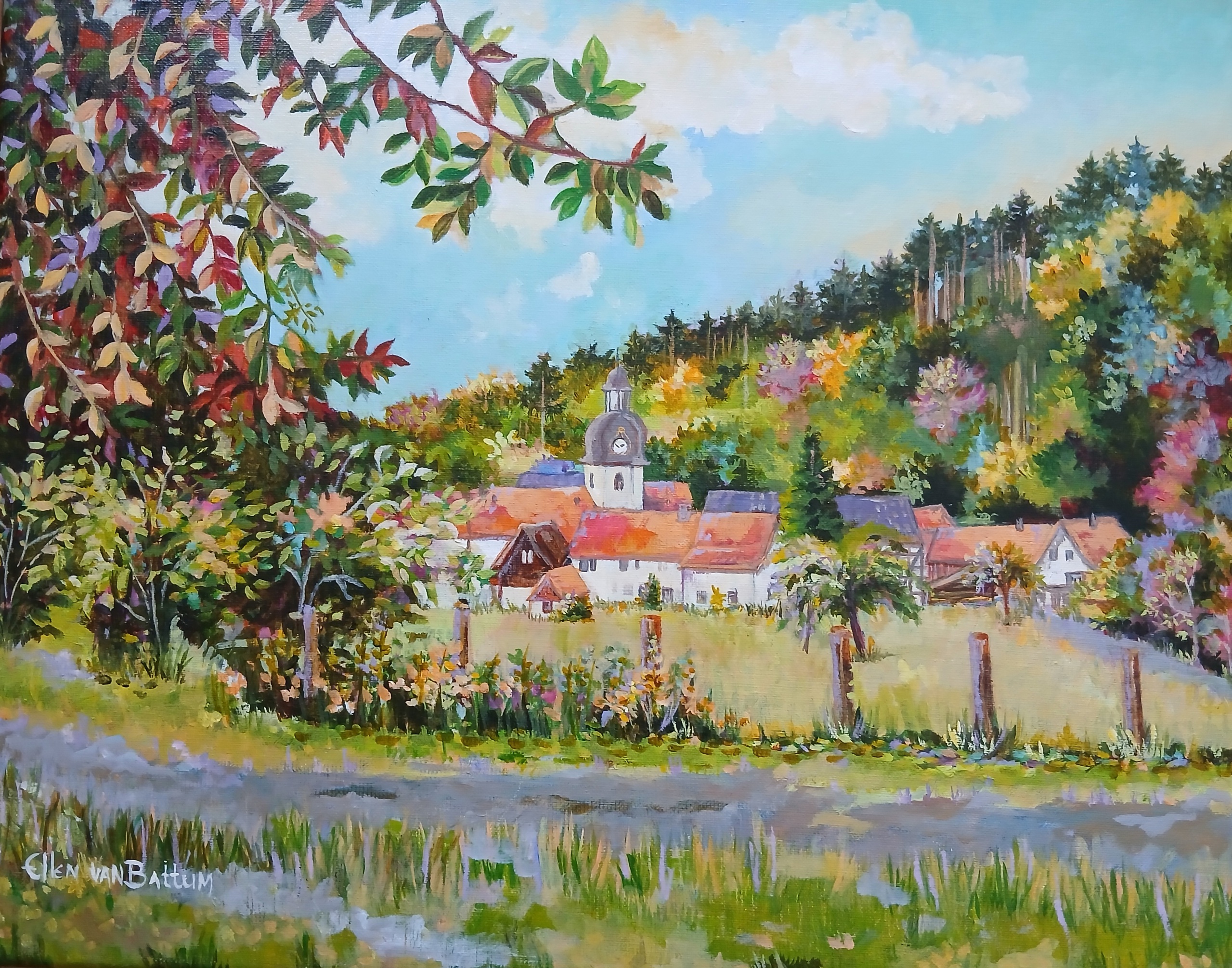 Ellen van Battum(1953) Beeldend kunstenaar. Maakt figuratieve, realistische en abstracte schilderijen . Inspiratiebronnen zijn landschappen , reizen en onderwerpen uit het leven.