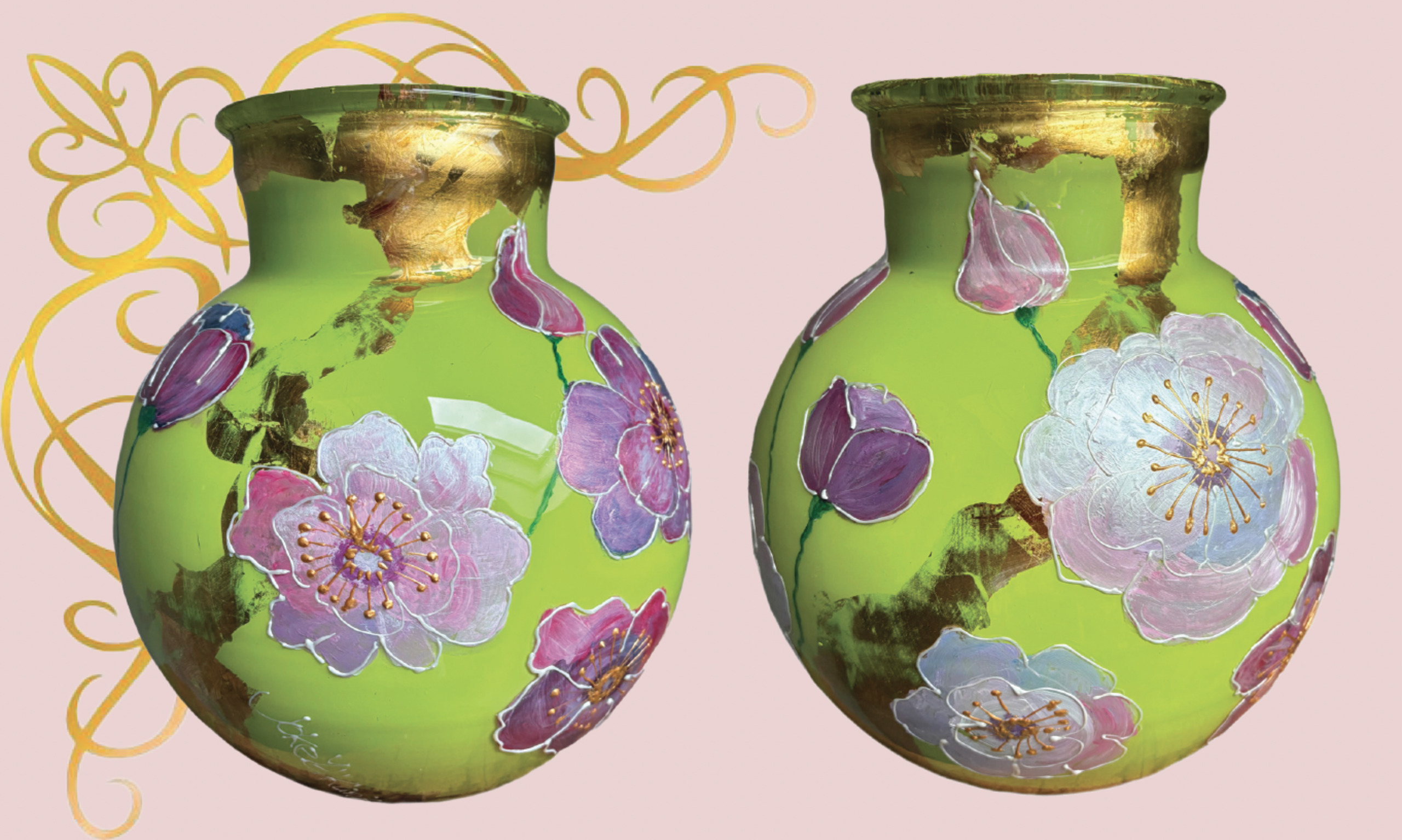 Handgeschilderde glasvaas met een vleugje goud