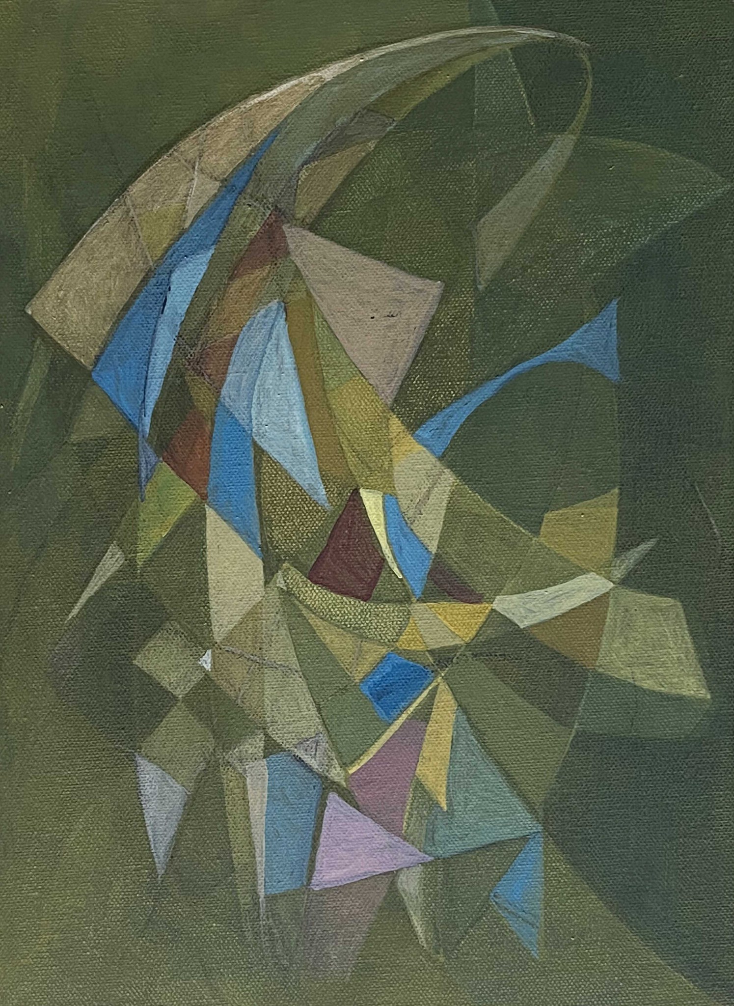 Een kunstwerk is voor mij een zoekwerk, van een leeg doek naar een compositie van abstracte vormen in kleuren die diepte, ruimte, lichtinval en contrast tot een uitgebalanceerd geheel brengen.