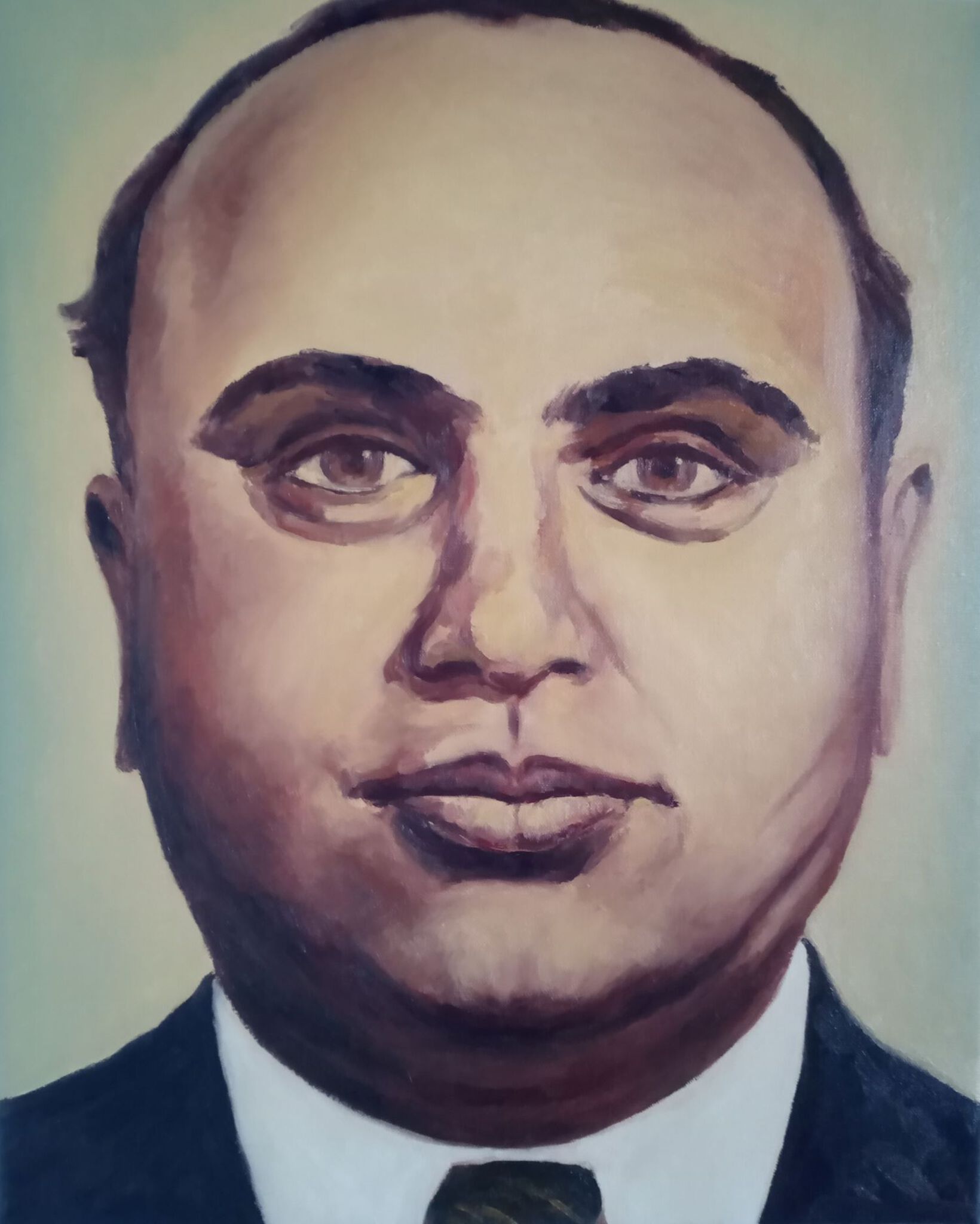 Professionele kwaliteit olieverf op Claessens oliegeprepareerd linnen Uit de serie Mugshots, een reeks portretten gebaseerd op de originele politiefoto’s. Een verzameling gezichten van de sleutelfiguren uit de onderwereld in de VS van rond de jaren ’30 ten tijde van de ‘drooglegging’. De periode van Al Capone, een periode waarin grote groepen immigranten via New York hun geluk beproefden in de Nieuwe Wereld, een land van vrijheid en onbeperkte mogelijkheden. Een deel zocht zijn heil in clandestiene handel en praktijken en kwam zo in de georganiseerde criminaliteit terecht. Vaak al van jongs af aan. Wat zeggen deze gezichten ons? Valt er iets te lezen over de psychologie in de gezichten van de leidende onderwereldfiguren uit die tijd? Reinout J. Zikel heeft zijn opleiding gevolgd aan de Koninklijke Academie van Beeldende Kunsten in Den Haag.