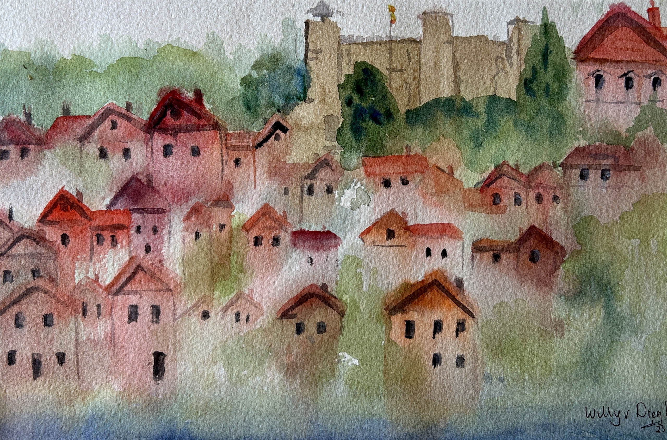 Aquarel Watercolor Ohrid Cityscape Stadsgezicht Expressie