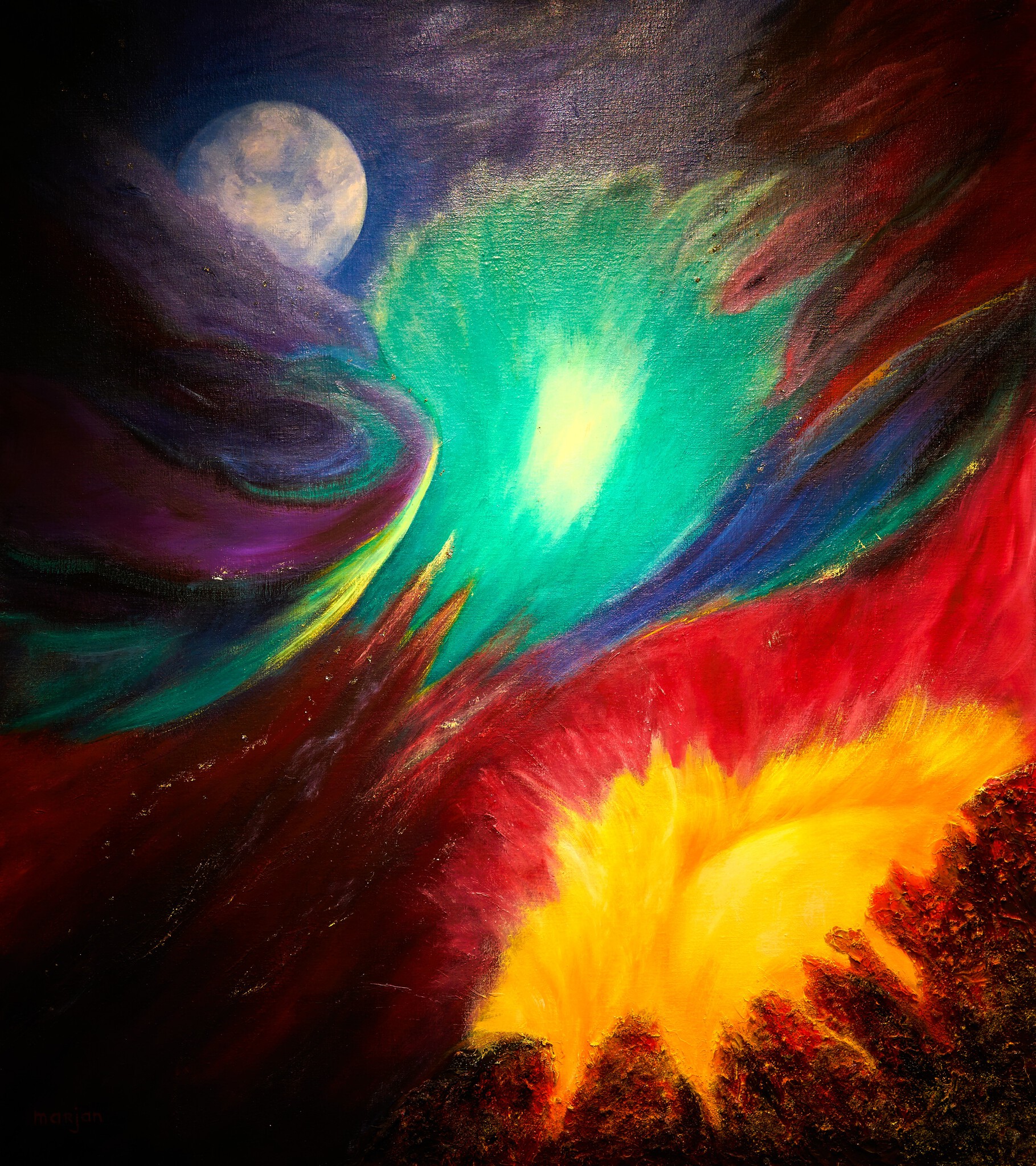 Schilderij Zon Maan Mixed Media Sterren Marjansart