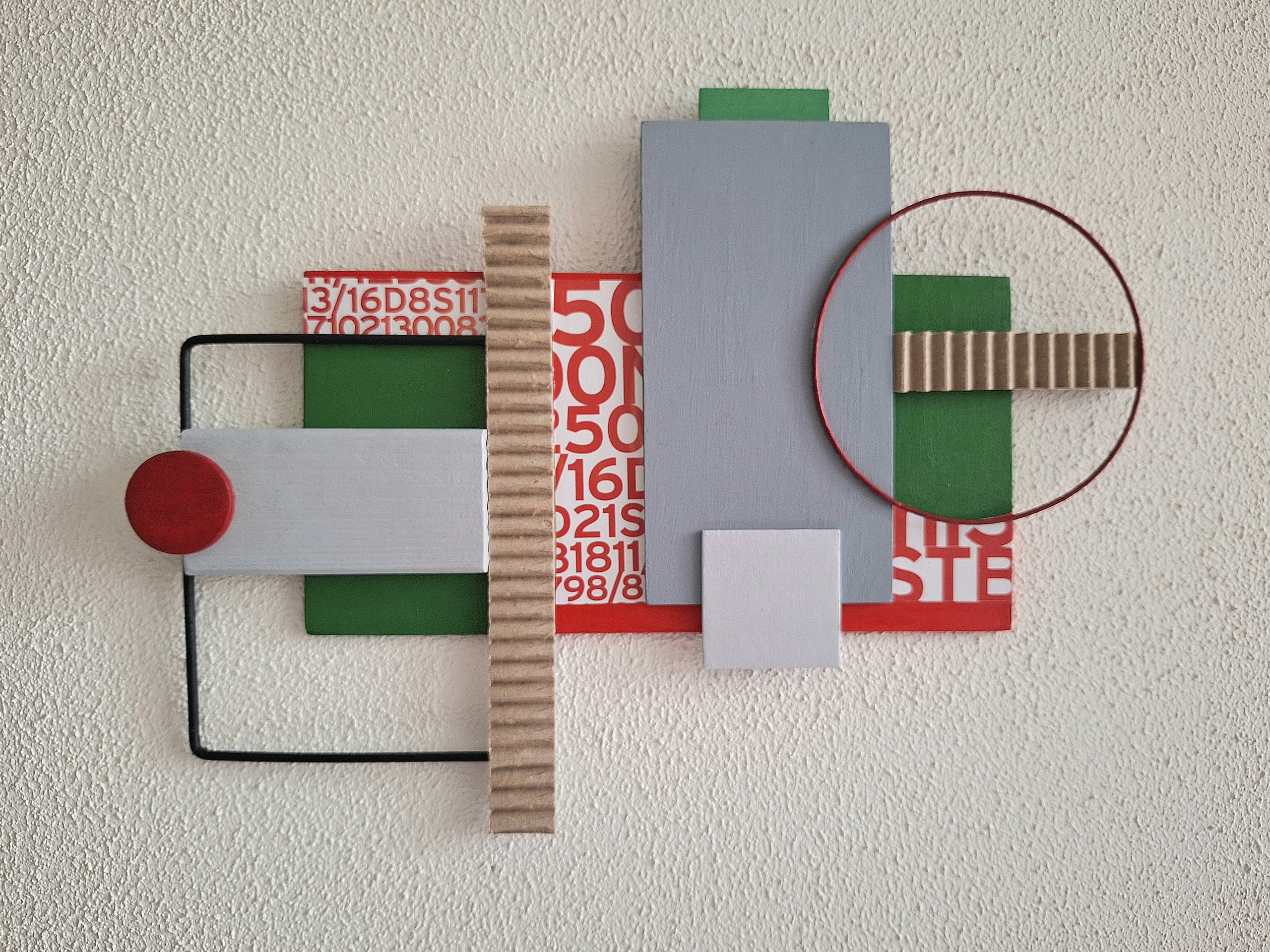 Mixed Media Cijfer Karton Ijzer Hout Rood Groen Wit Grijs Zwart Abstract Geometrisch