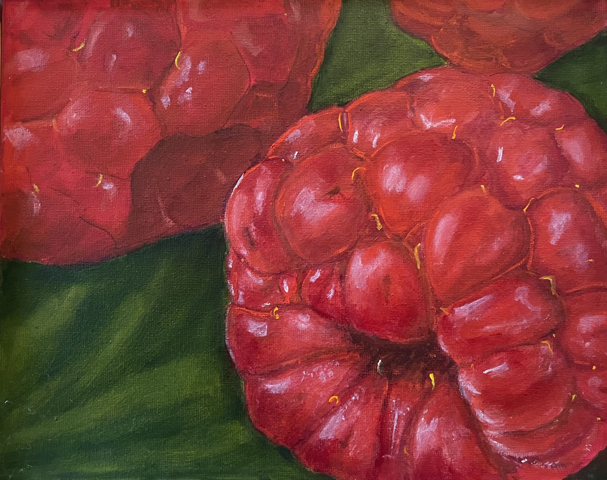 Geplukt in de tuin en zo verplaatst naar het doek.