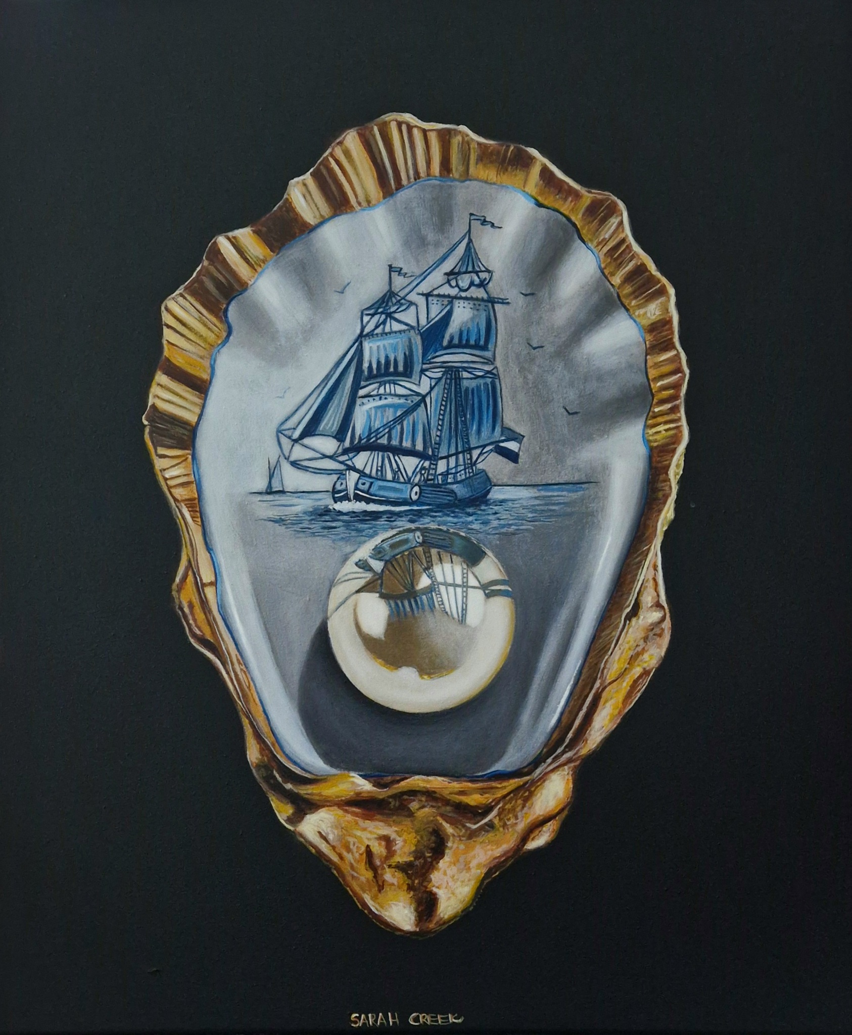 Sarah Creek schildert met acryl op canvas of linnen. Onderwerpen zijn portretten en stillevens. Sarah geeft les aan 55 talentvolle cursisten in een atelier aan huis.