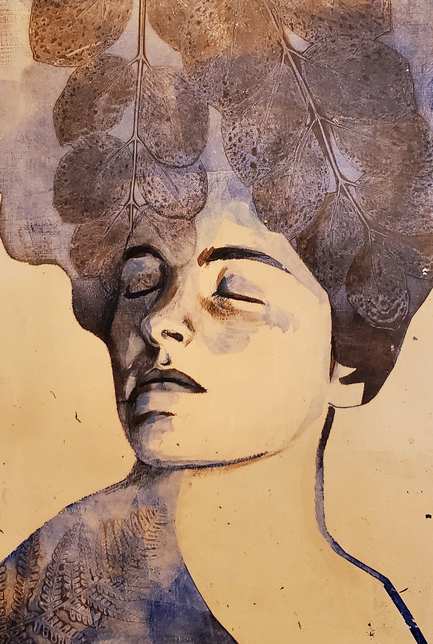 Gelprint van een vrouw met bladmotieven