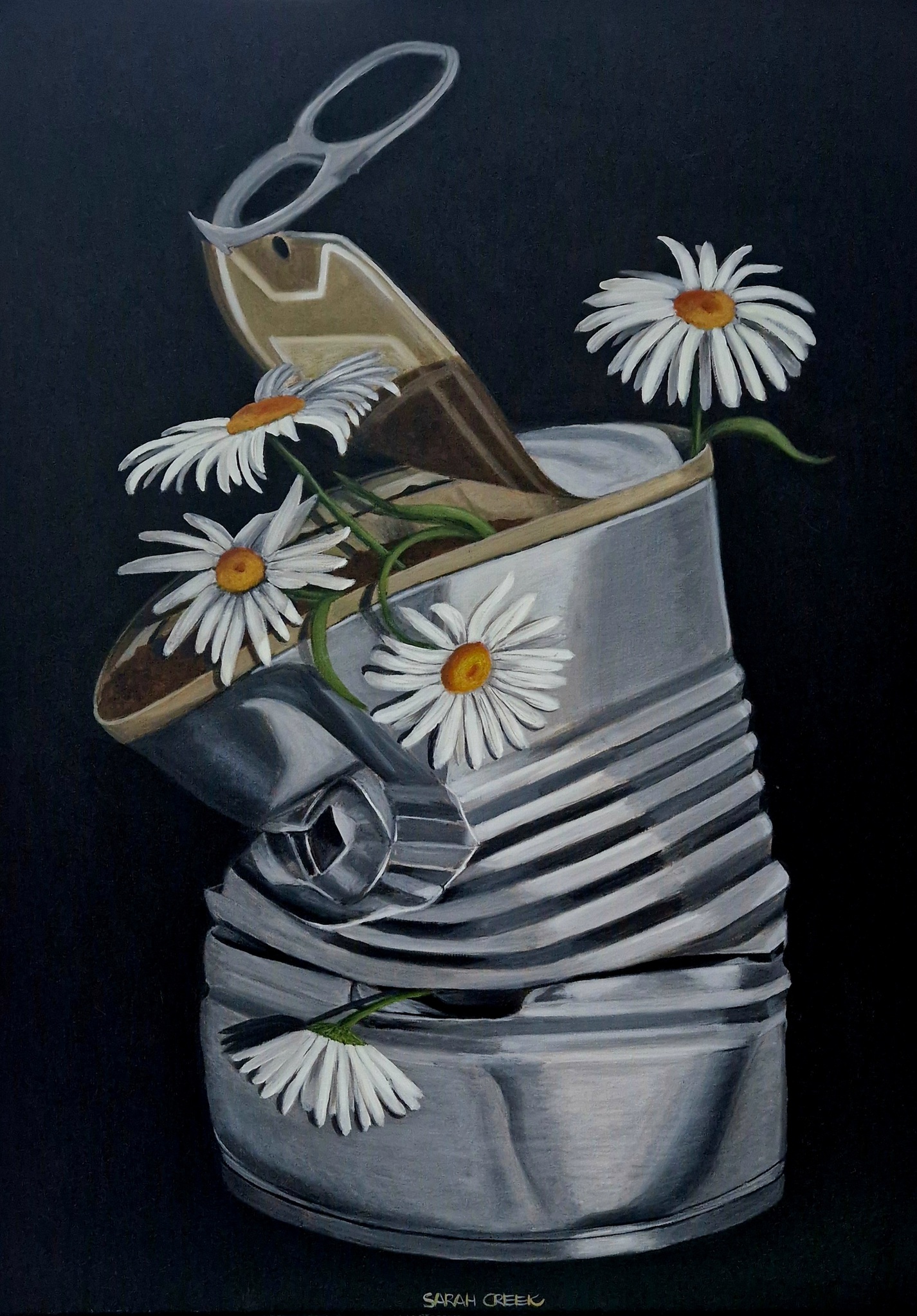 Sarah Creek schildert met acryl op canvas of linnen. Onderwerpen zijn portretten en stillevens. Sarah geeft les aan 55 talentvolle cursisten in een atelier aan huis.