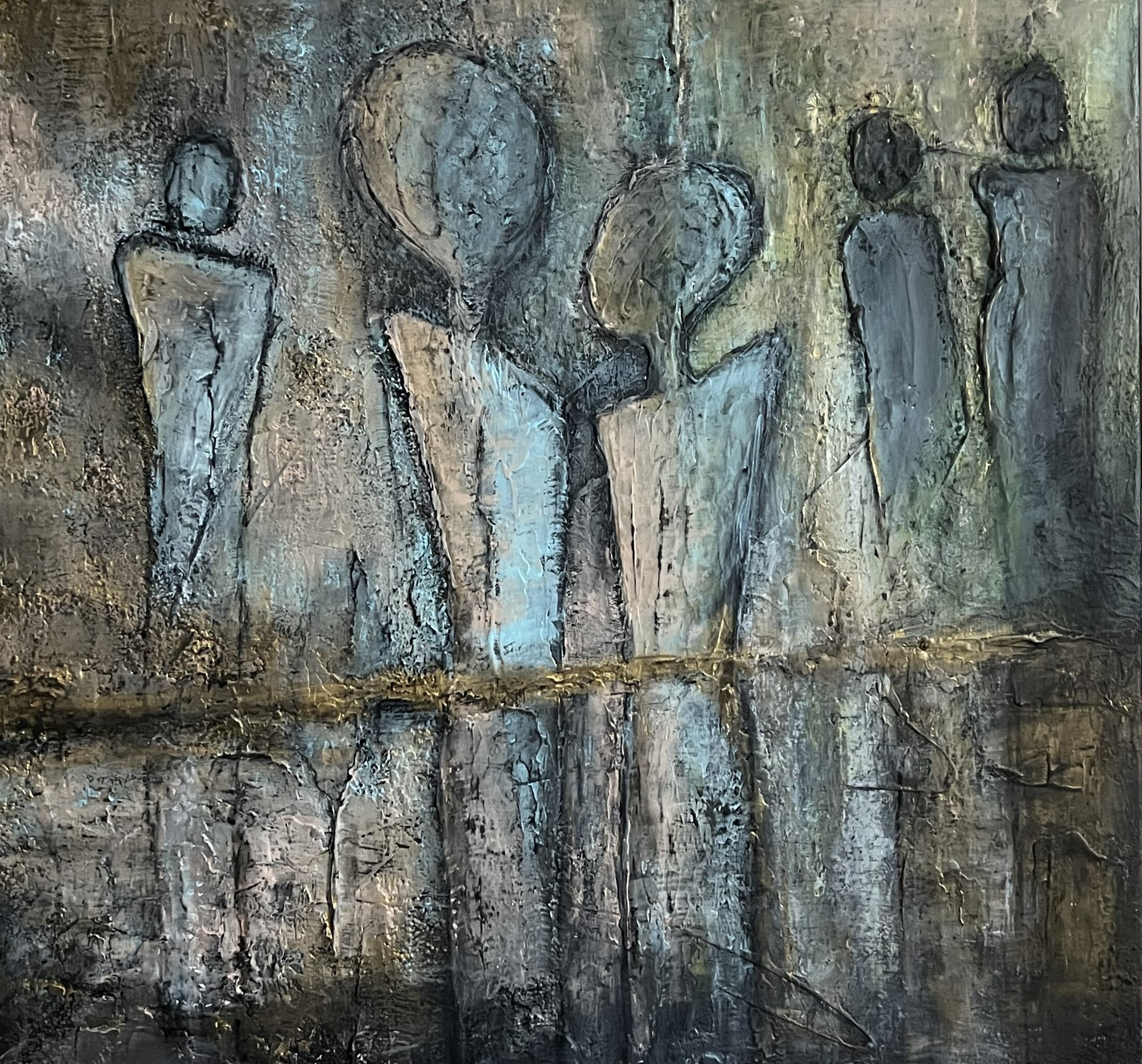 José Leenders-Smits vertelt haar verhaal in haar eigenkunstzinnige werk. Ze schrijft en vertaald haar emoties kleurrijk op een doek met verschillende materialen. Smits Crea Art Kunst en Beleving