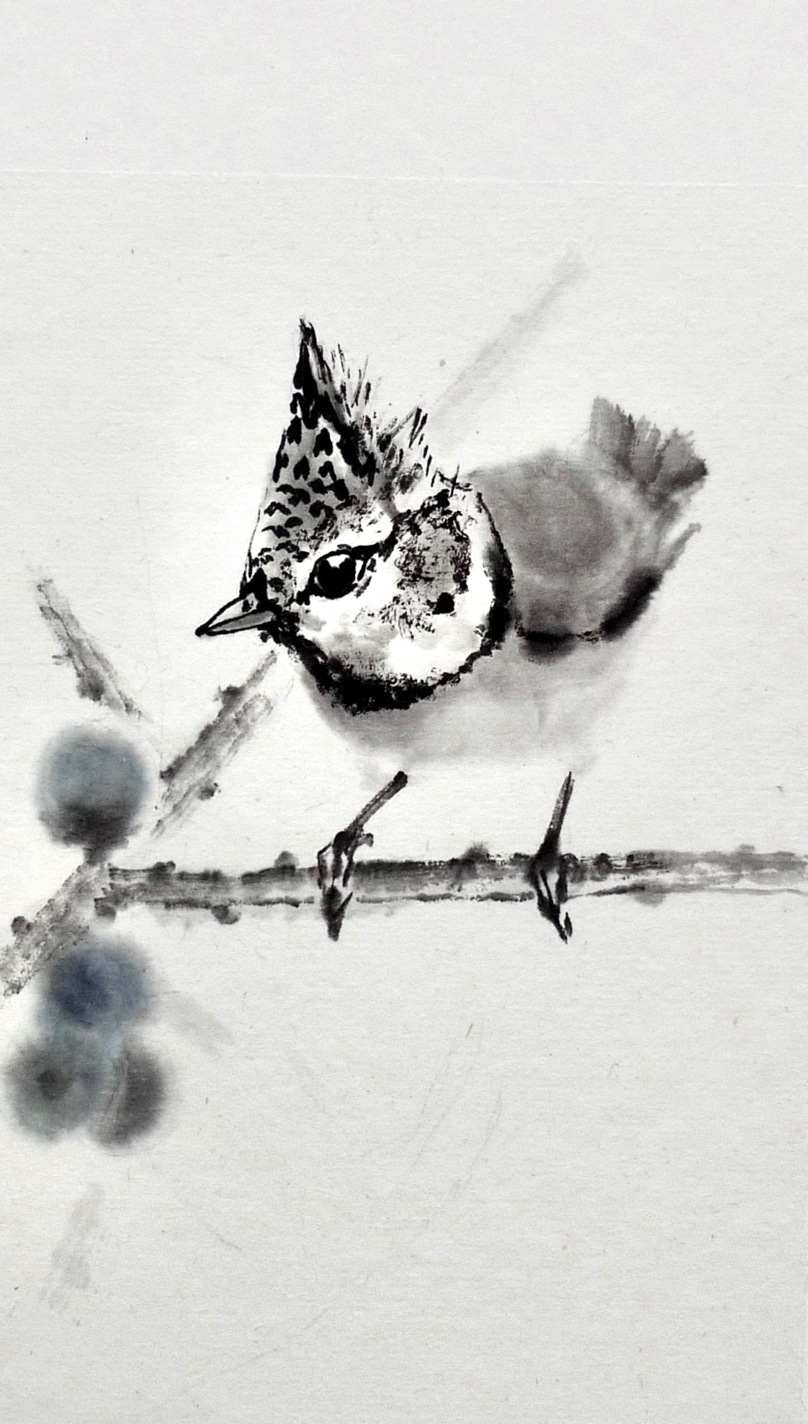 Vogel Dier Tuin Natuur Painting Inkt Bird Paper Garden Zen Schilderen Nature Rice Rijstpapier Penseel Brush Ink Mees