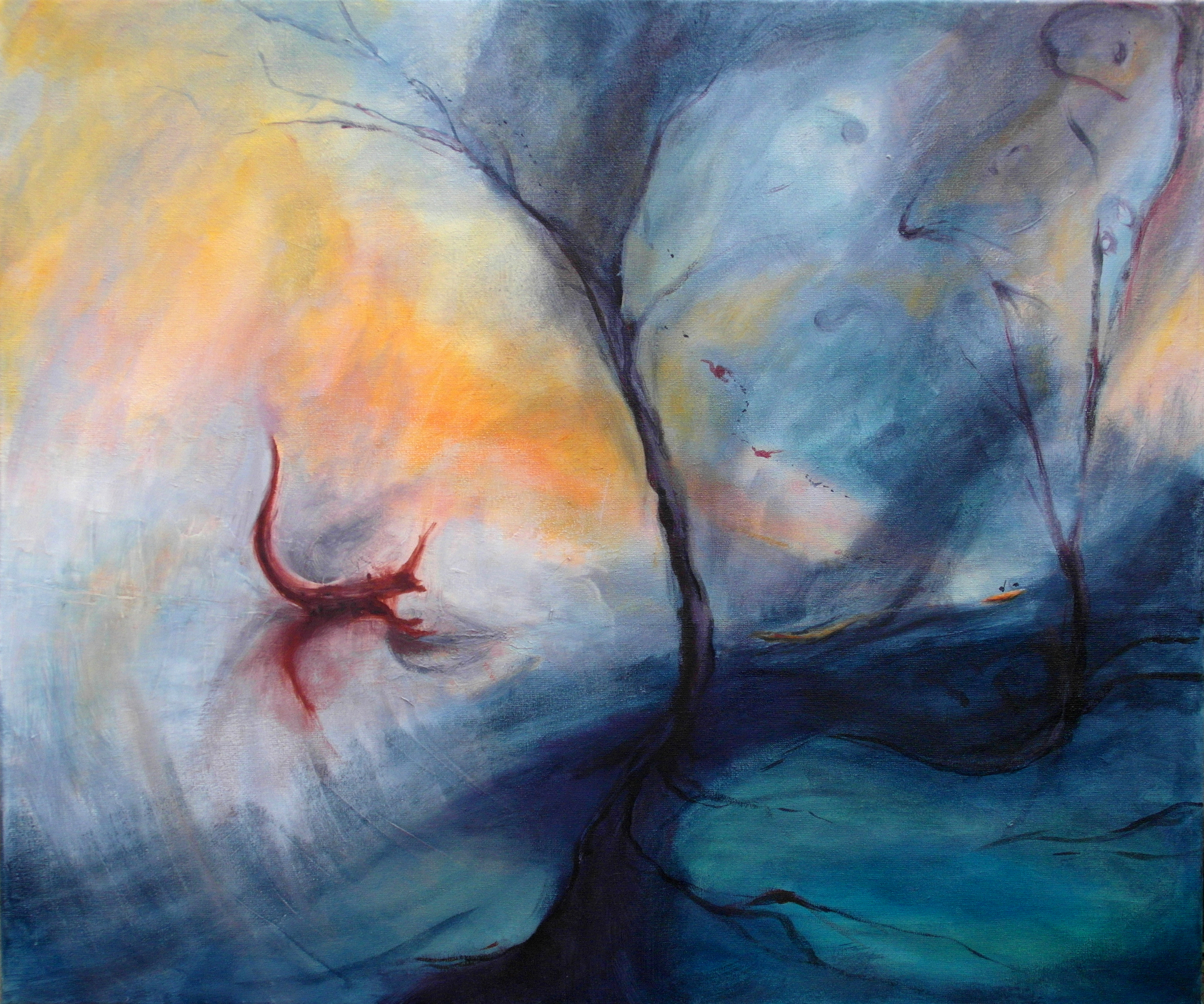 De weidsheid van het wad, wind en water tot aan de horizon. Het is deze weidsheid die ik in mijn landschappen wil laten zien. In dunne lagen olieverf geef ik de tere kleuren tussen land en water weer.