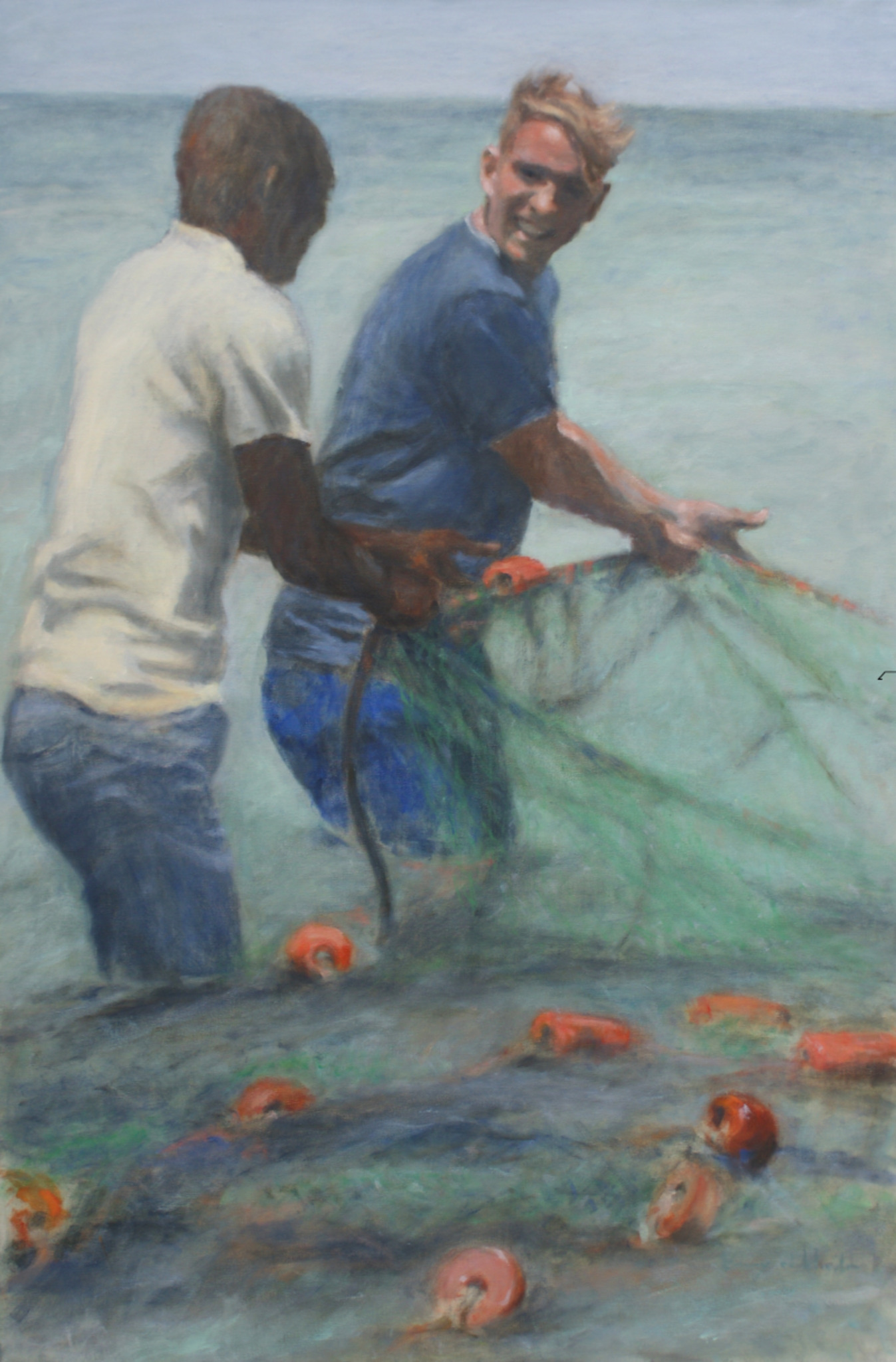 Vissers Zee Mannen Contrast Samen Werken Vriendschap