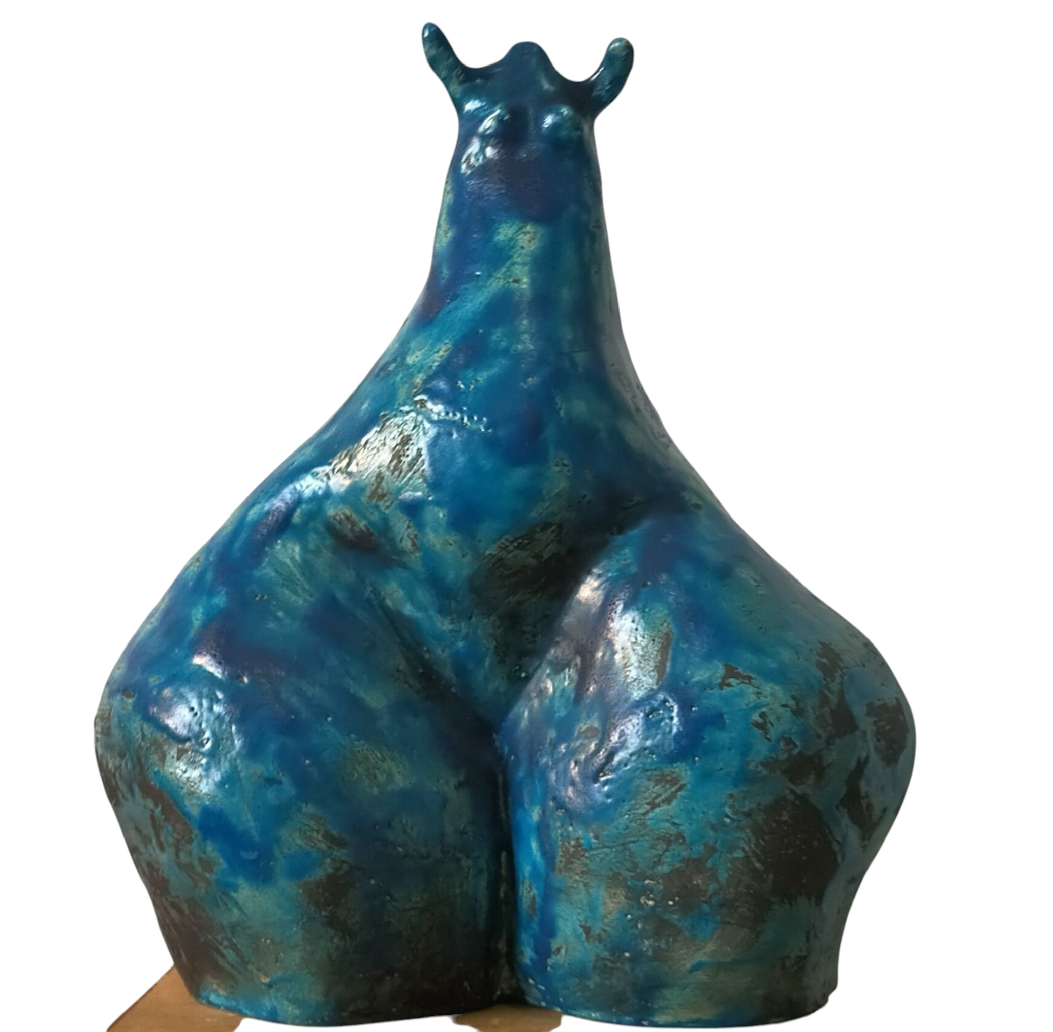 beeld opgebouwd uit klei en hierna geglazuurd en en verder bewerkt