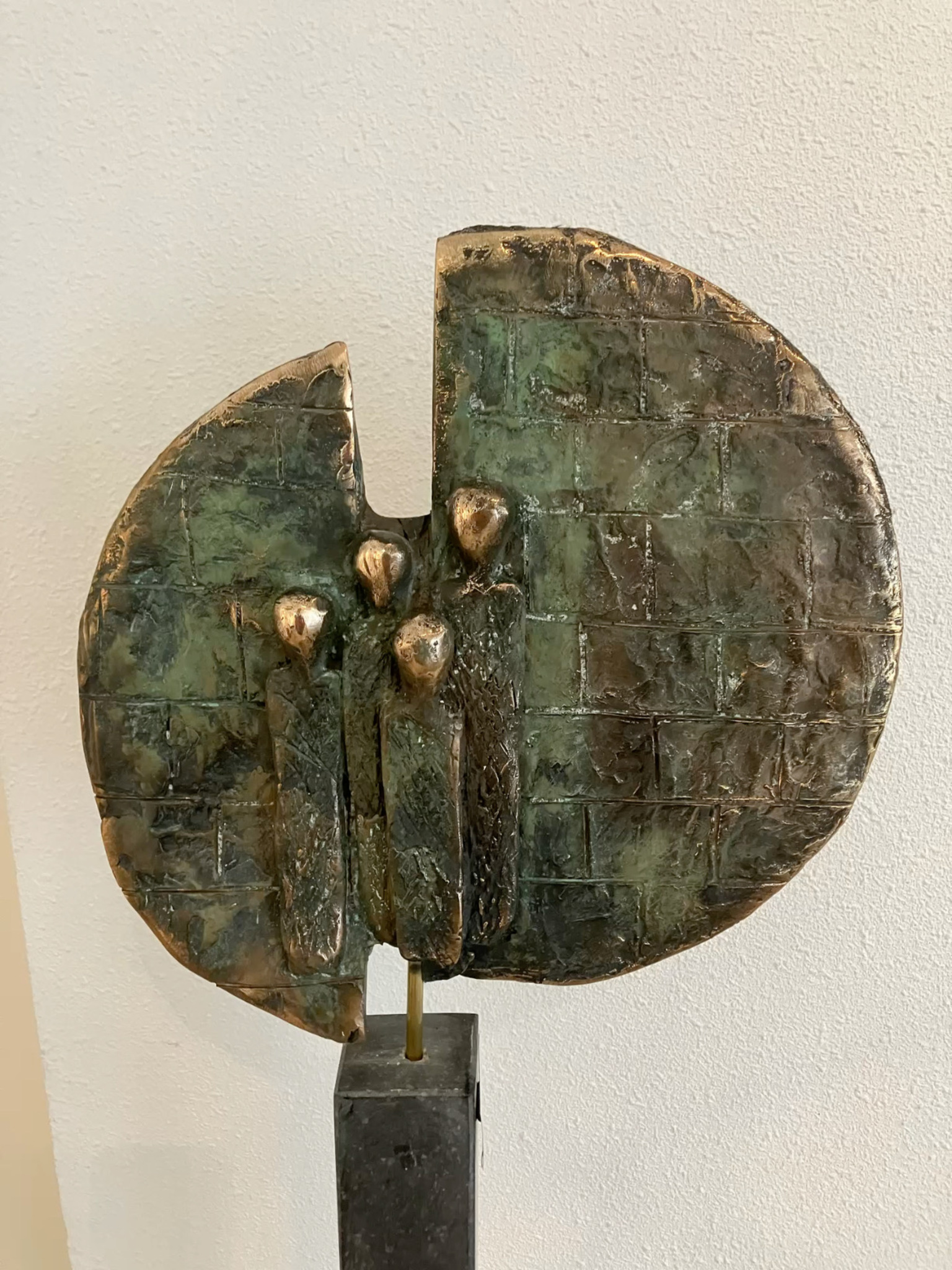 Bronzen beeld unica incl hardstenen sokkel