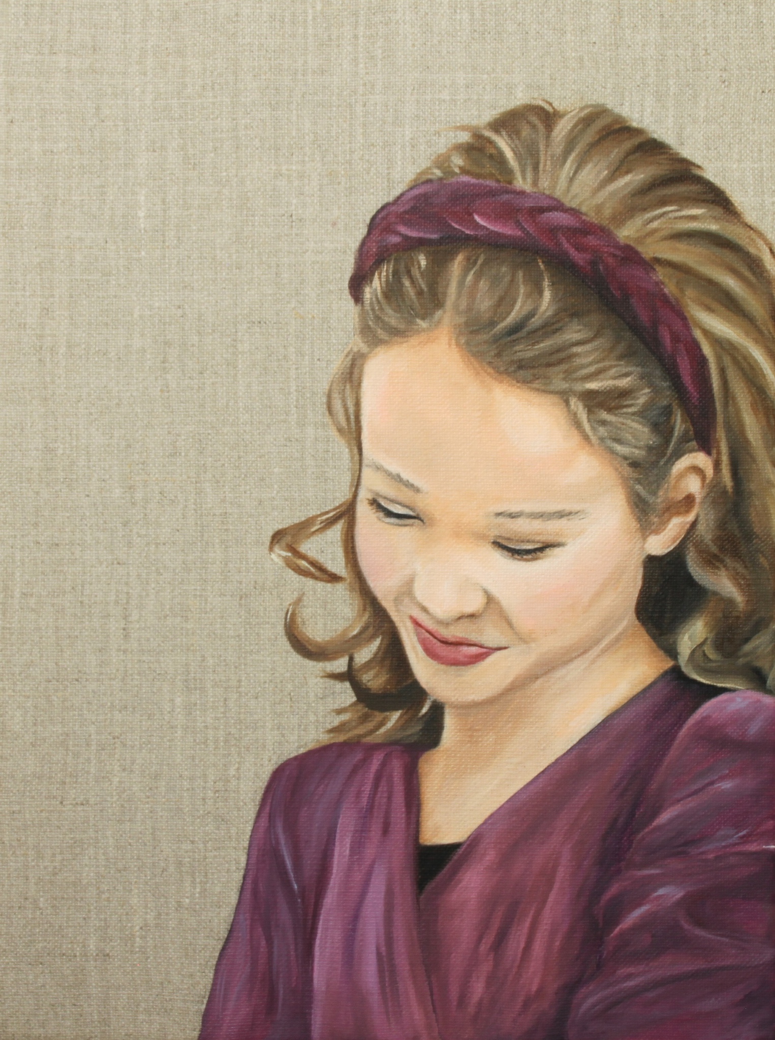 Portret Realistisch Linnencanvas Naturellinnen Transparantegesso Kinderportret Inopdracht Commissie Naturel