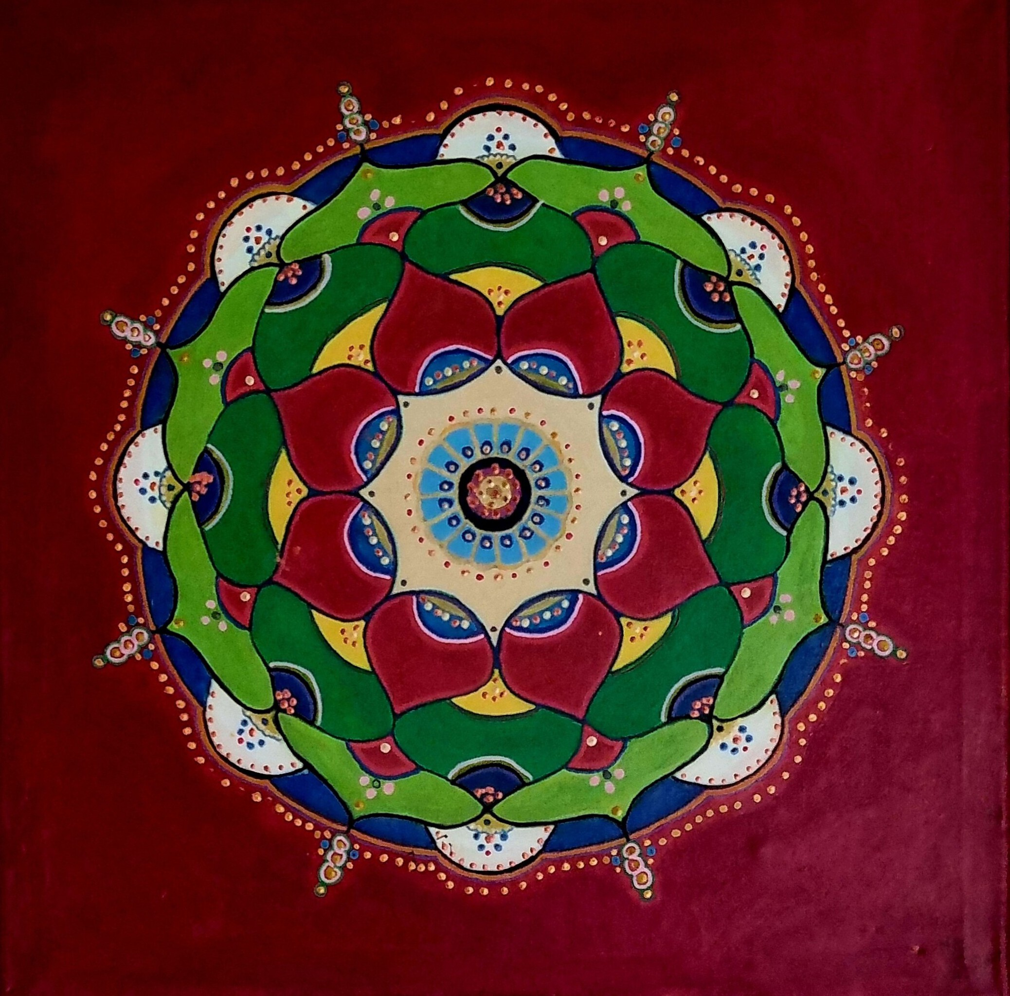 Acryl op doek. Mandala Rode Lotus.