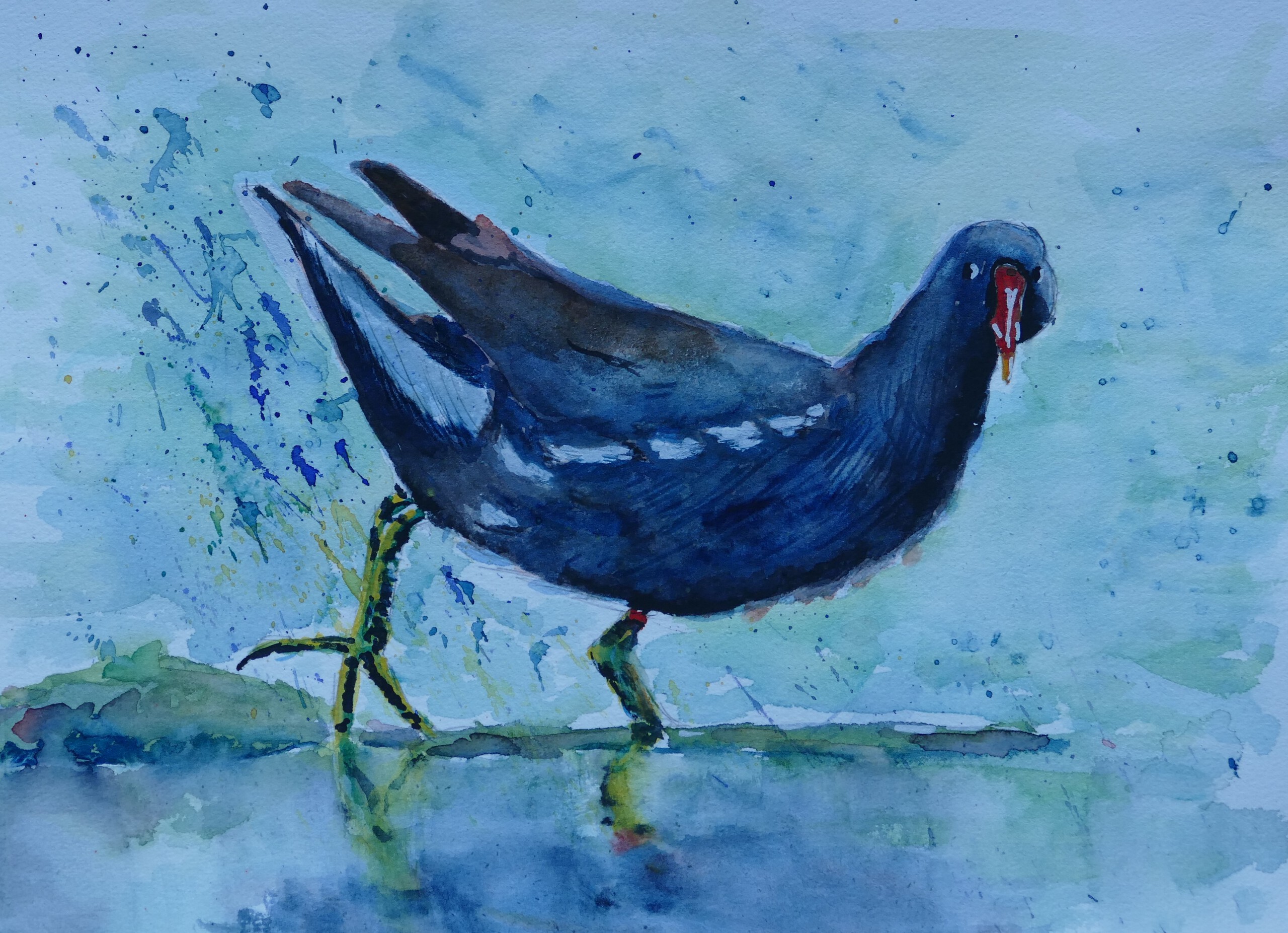Waterhoen Aquarel Vogels