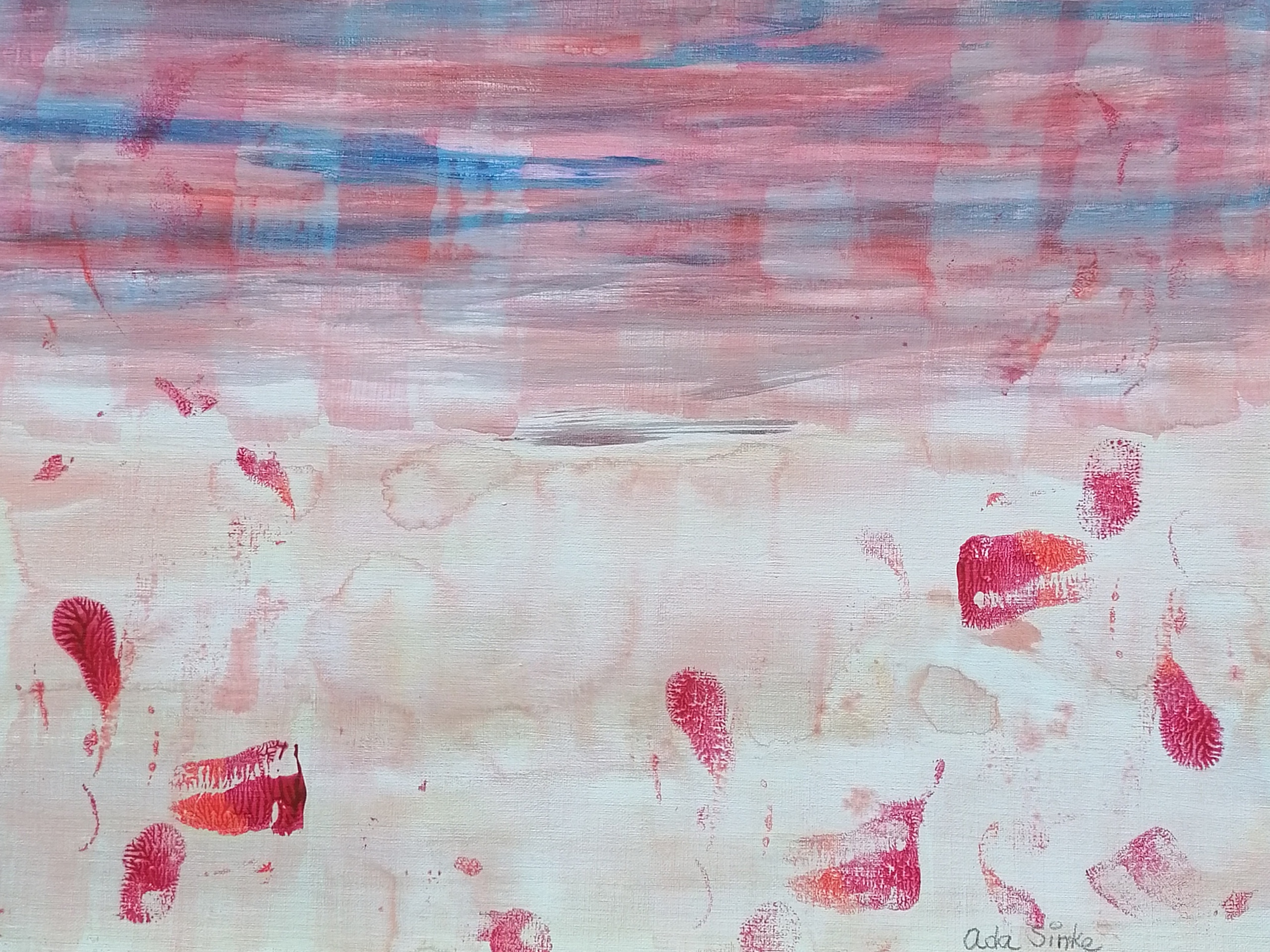 De ongerepte natuur is de inspiratiebron van Ada Sinke. Ze 'vangt' haar 'geniet-momentjes' aldaar in bijzonder kleurrijke en sfeervolle landschappen met Acryl en Pastel of in de Zen-achtige Japans/Chinese Sumi-e techniek. Herkenbaar en ook weer niet. Haar fascinatie voor de natuur blijkt ook uit haar gebruik van natuurlijke en zelf geconserveerde 'Objet trouvé ' (als de verborgen ziel der dingen) in Collages en 3D objecten. Ada Sinke is a Typical latebloomer as a visual artist. Around the age of 45 she combined a busy job as sociologist with retraining for that. She also taught drawing lessons.The landscapes of het many hikingtrips at home and abroad are her source of inspiration. She conjures that impressions up to a very own serene ambience. Colourful, subtile, recognizable and yet not.