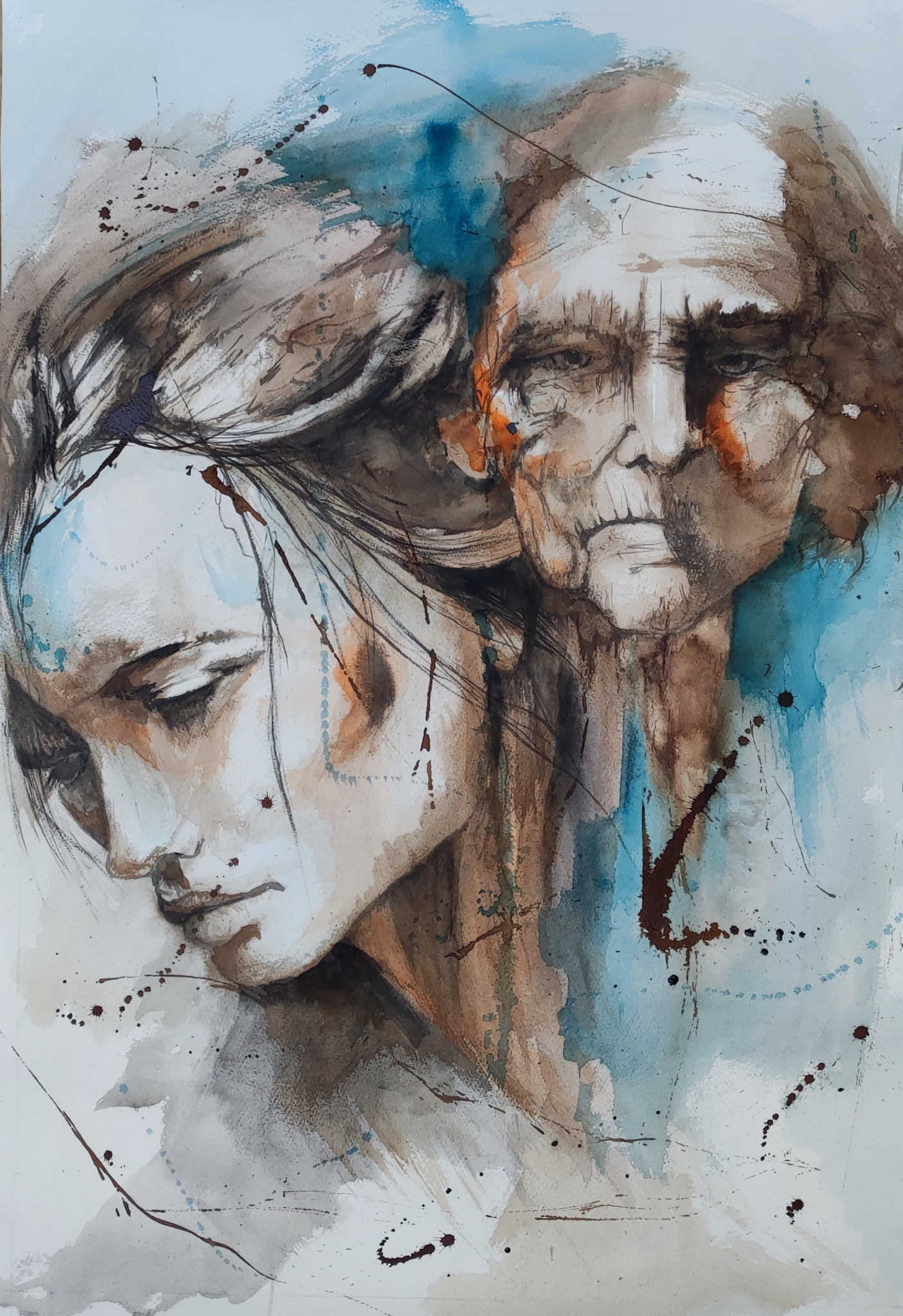 In haar sporen verbeeldt de stille overloop van tijd tussen generaties, een fluistering tussen jeugd en ouderdom, tussen wat blijft en wat vergaat. Het werk spreekt over erfelijkheid van ervaring: hoe wat we zijn, gevormd is door wie voor ons kwam - en hoe sporen zachtjes in ons verder leven