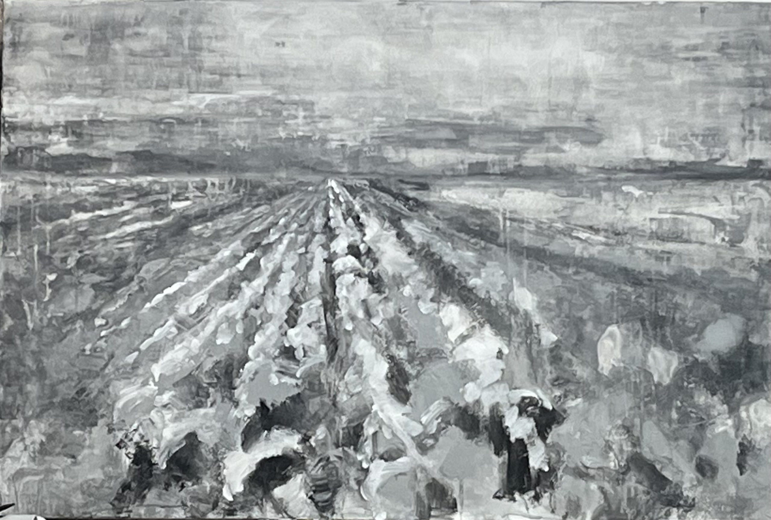 Zwannie schildert. Het gaat om de suggestie met verf. Verf dat als materiaal zichtbaar mag blijven. Haar stijl is impressionistisch en het werk heeft een grote zeggingskracht.