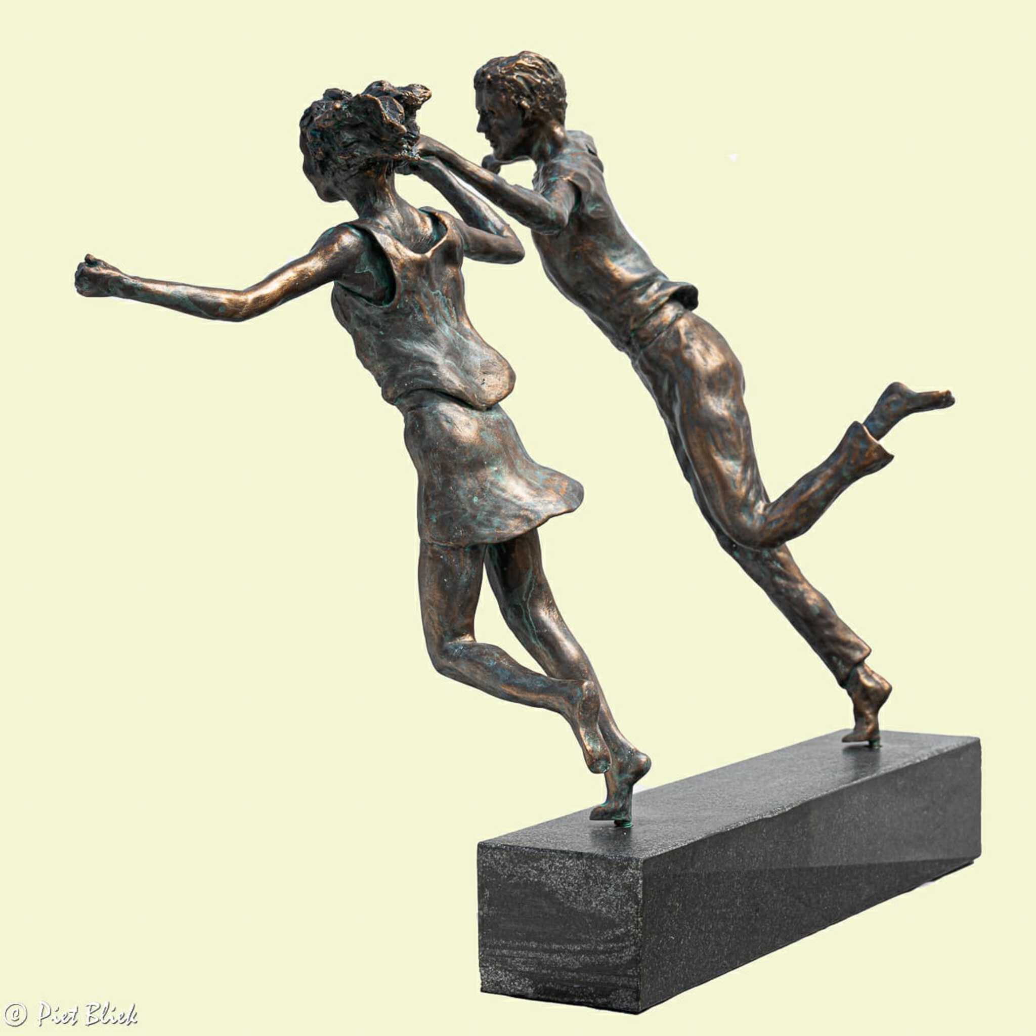 Gevoel ontstaat door beweging. Het menselijk lichaam en handen gebruik ik als middel. De verstilling in de beweging draagt de verwachting van een resultaat. Dat is wat ik het liefst wil maken. Bijvoorbeeld de maestro die het orkest grijpt om de mooie toon vast te houden. Of de balletdanseres die zich inleeft naar het moment van optreden. Het kind dat de bescherming voelt van de ouder. Maar ook de beweging van euforie die reflecteert. Ik werk zowel met marmer, brons als kunststof. Geregeld maak ik ook werk in opdracht, ik wil dan dat de koper het gevoel van de “wow factor” heeft. Voor elke opdracht maak ik eerst een voorstudie van klei zodat ik weet dat ik de juiste snaar raak.