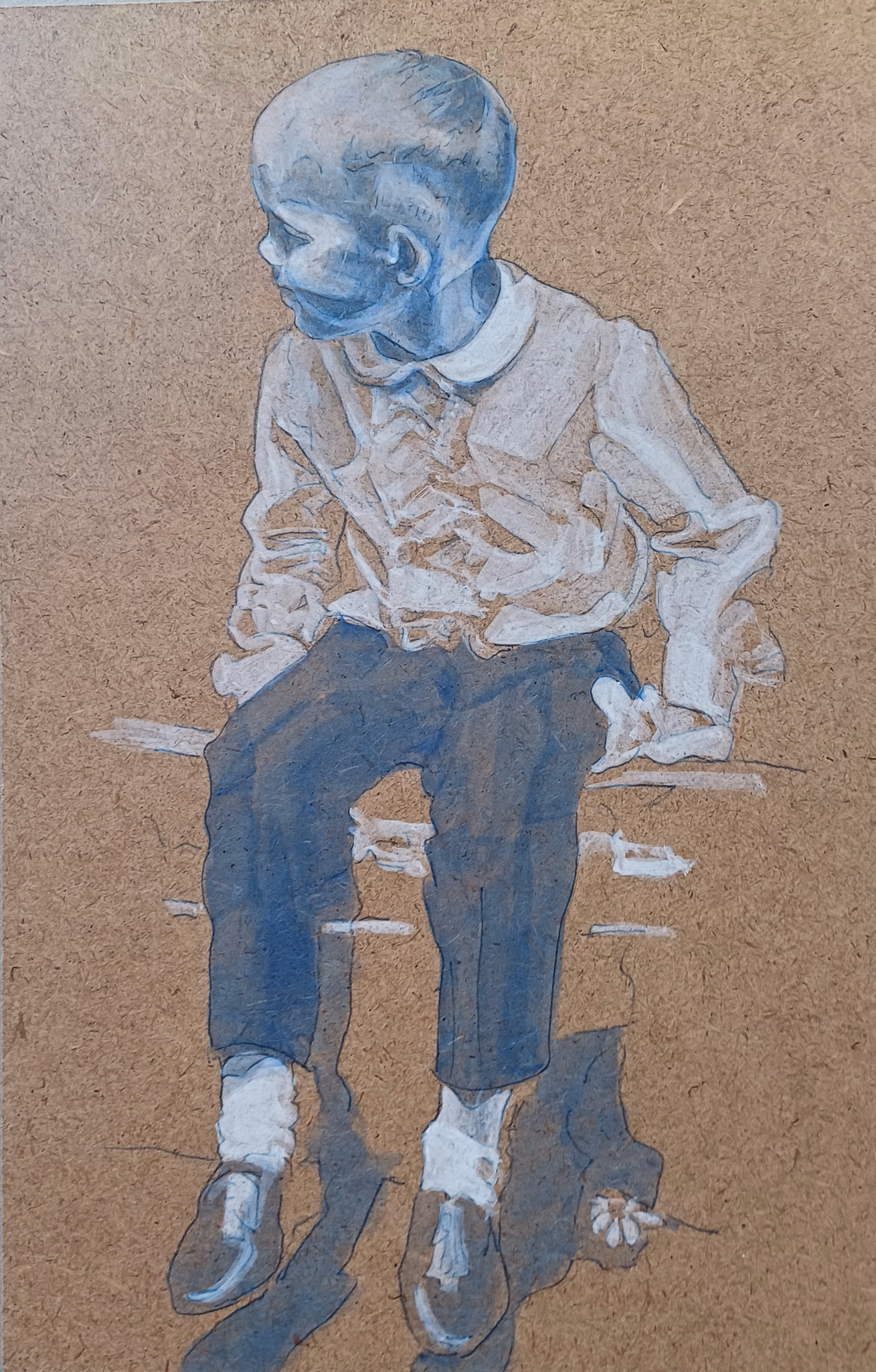 Kleine charmante werken op paneeltjes vaak A4-formaat. Portretten, bloemen, stillevens van fruit, glaasjes, doorkijken in het bos, een zicht met wachtende figuren….