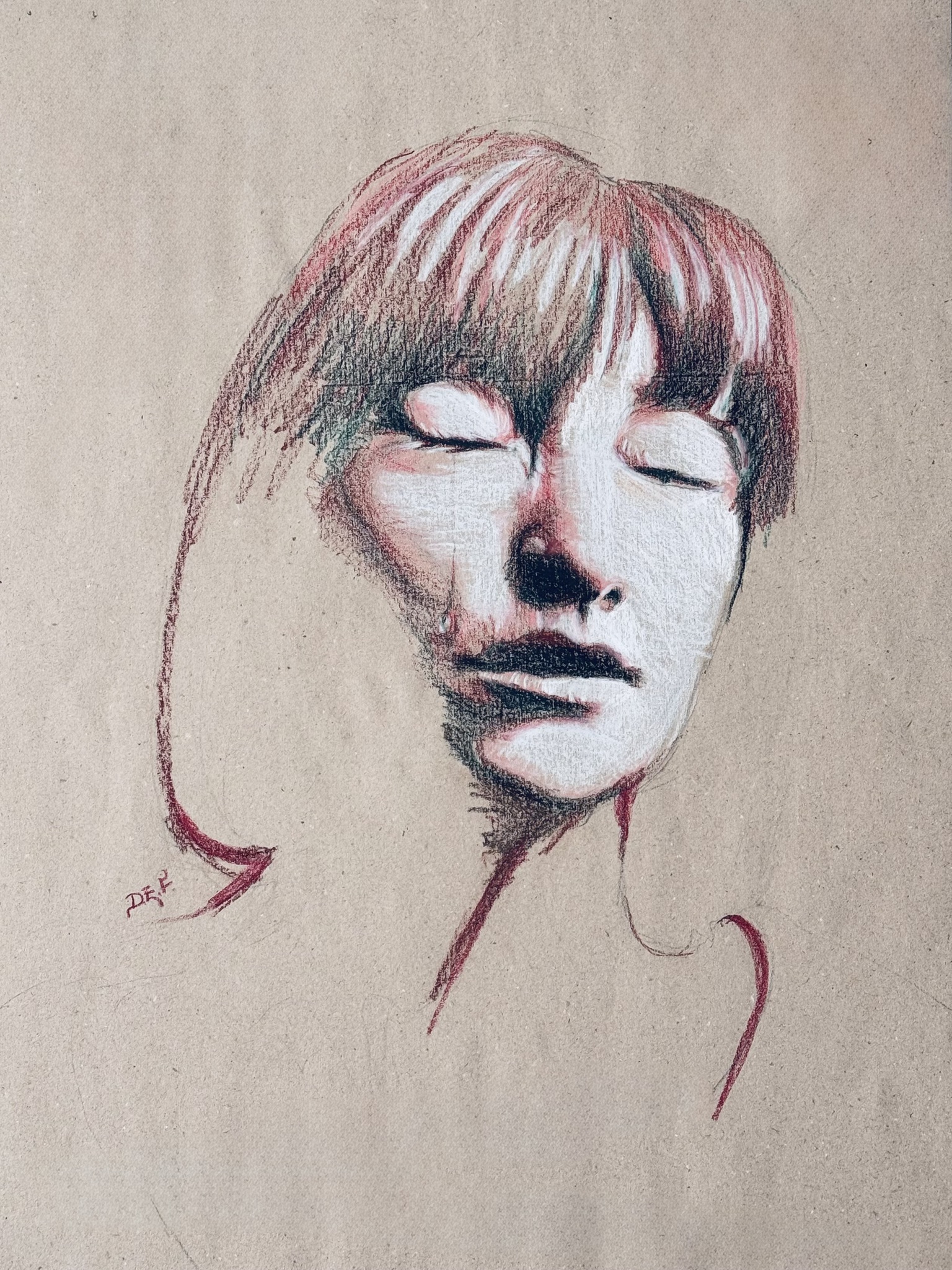 Delphine Lecompte Portret Neocolor Papier Tekening