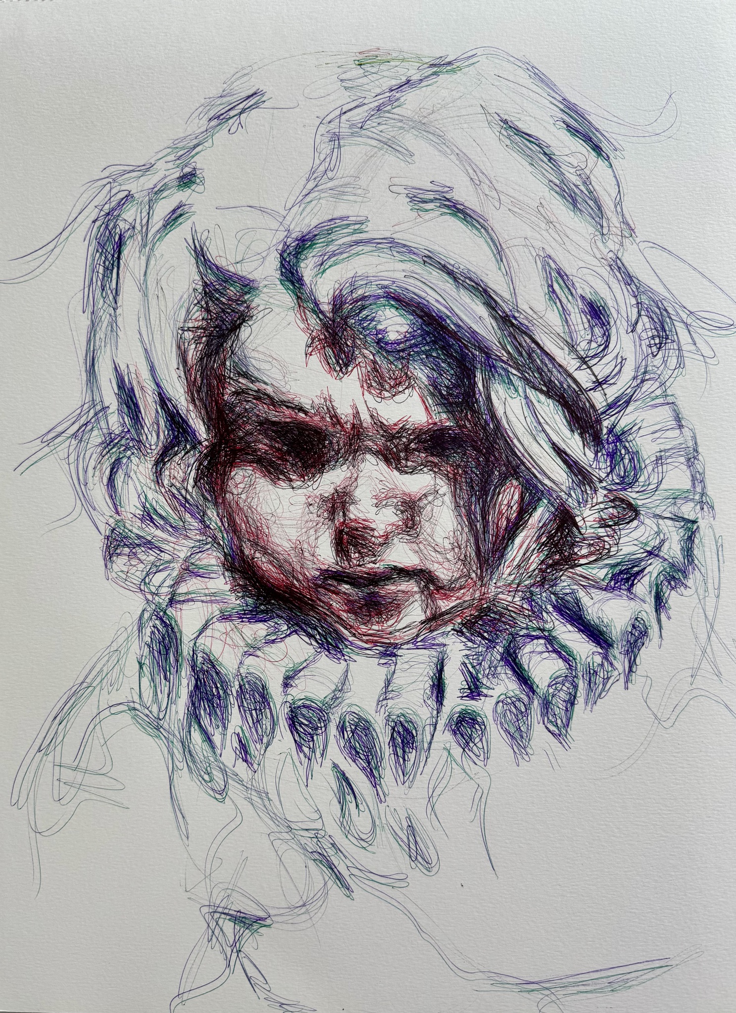 Portret Papier Tekening Engel Angel Balpen Molensteenkraag Plooikraag Lubbenkraag Pijpkraag
