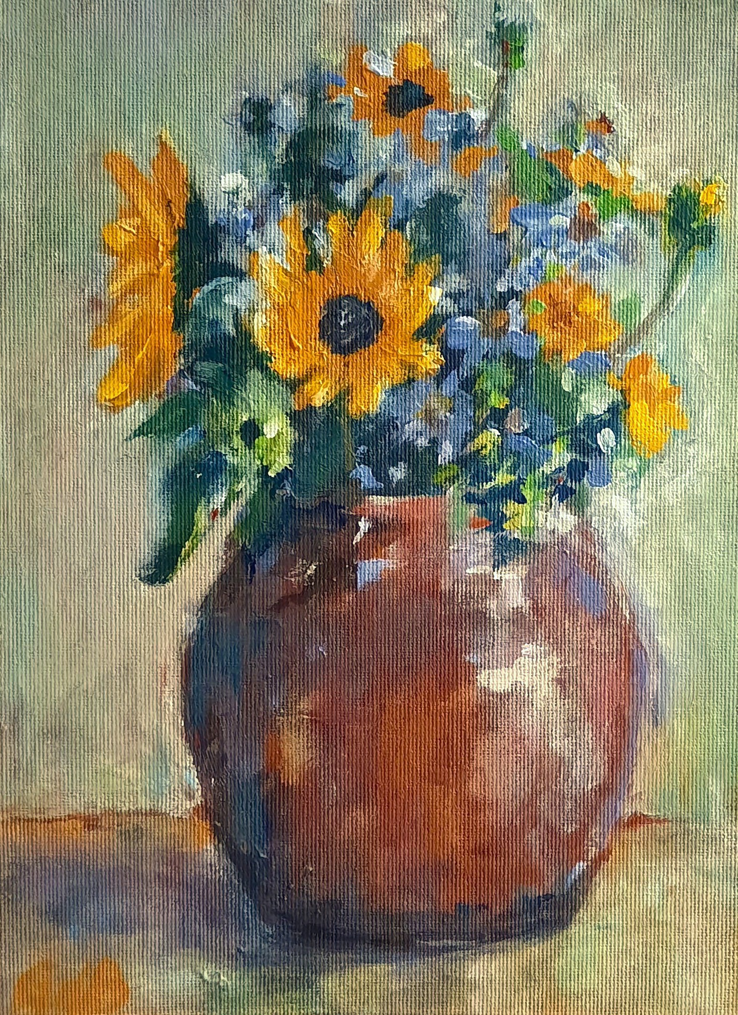 Geel Bloemen Vaas Zonnebloemen Najaar Asters Helianthus