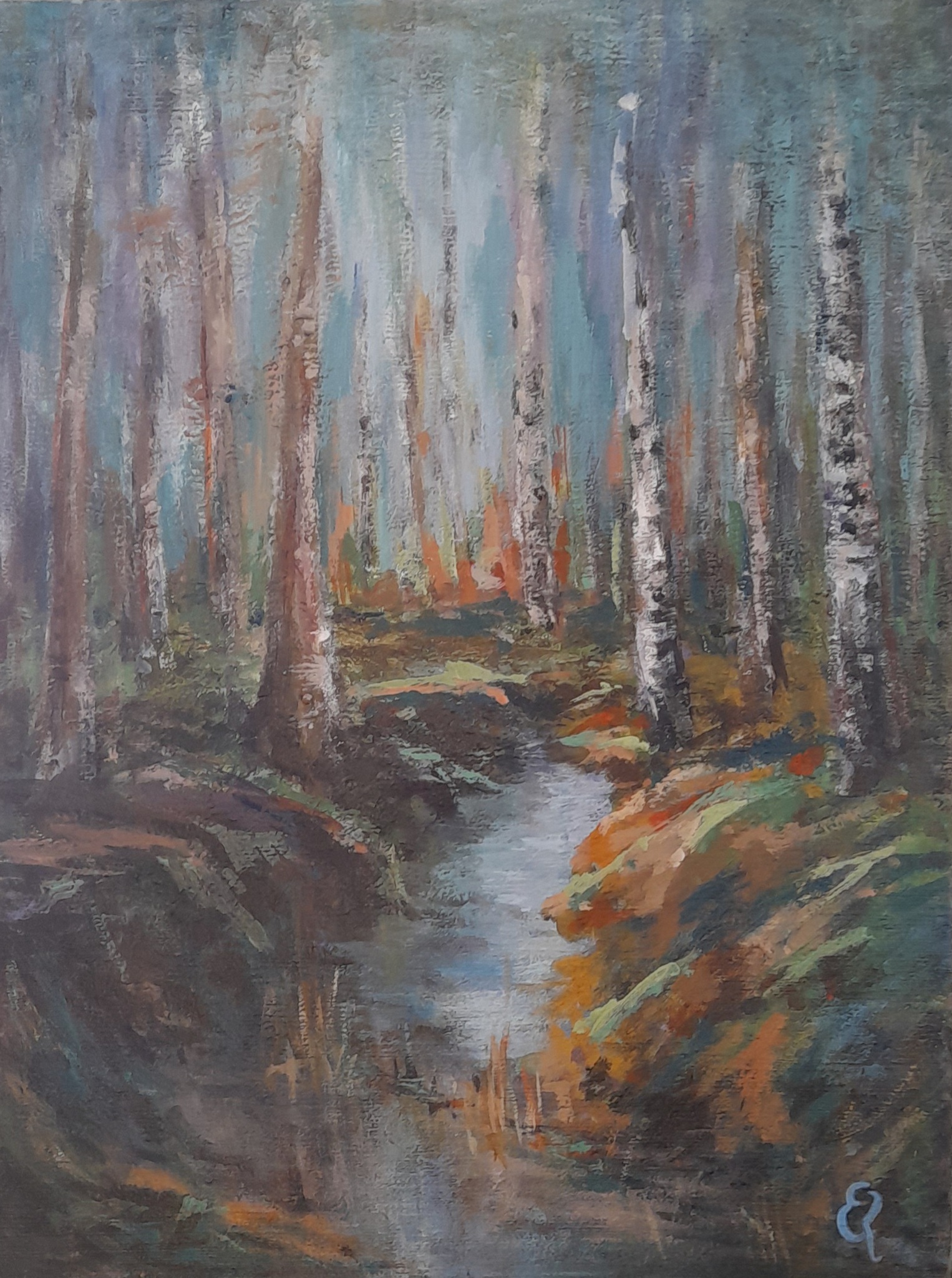 Bos Sloot Acryl Herfst Realistisch Groen Geel Water