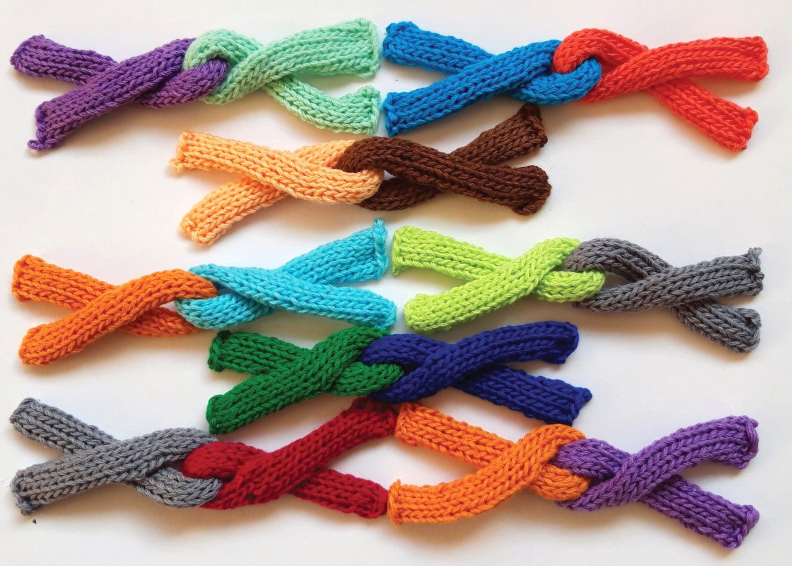 Het breiwerk 'lussen' bestaat uit twee lussen die elkaar vinden en daarna weer loslaten. Op de foto zijn 8 paar lussen te zien. Het idee is geïnspireerd door de poëzie van Hans Faverey. Deze dichter heeft het vermogen een taalbeweging uit te werpen en deze op kortere of langere termijn terug te halen, zoals een boemerang of dolfijn zijn curve maakt, elegant herneemt en terugkeert met soms zo’n grote kracht en zekerheid dat het uitgangspunt achterwaarts gepasseerd wordt.