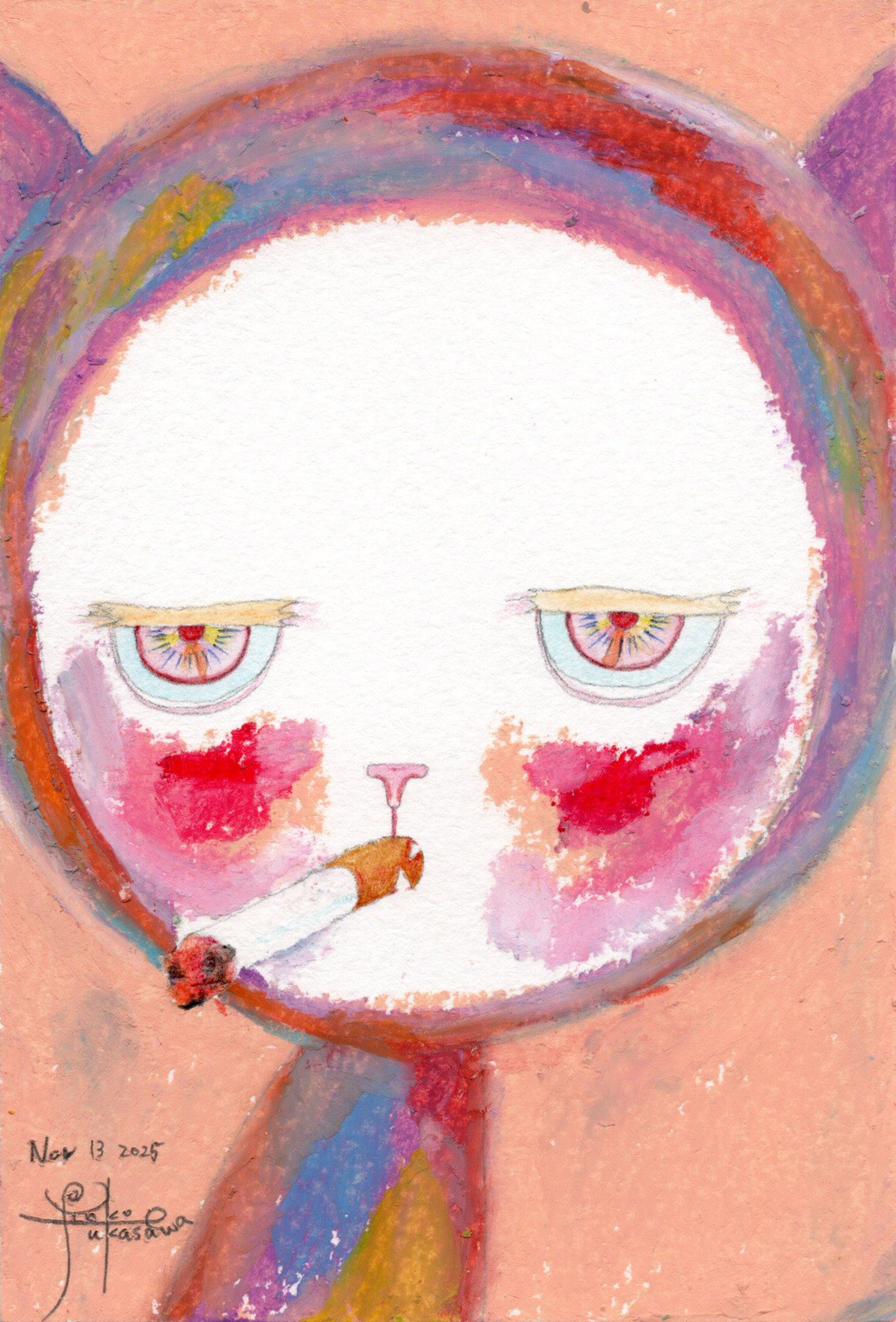 Yoko Fukasawa was born in 1982. 2001-Japan traditional craft department,Metal crafts major 2001-Volkswagen new Beetle - art contest The third place. 2002-TOKYO DOME - Tableware festival Fine work. 2017-And Schizophrenia has been revealed. Her paintings are outsider art. They are characterized by simple shapes and bright colors. She wants you to look at them and relax.