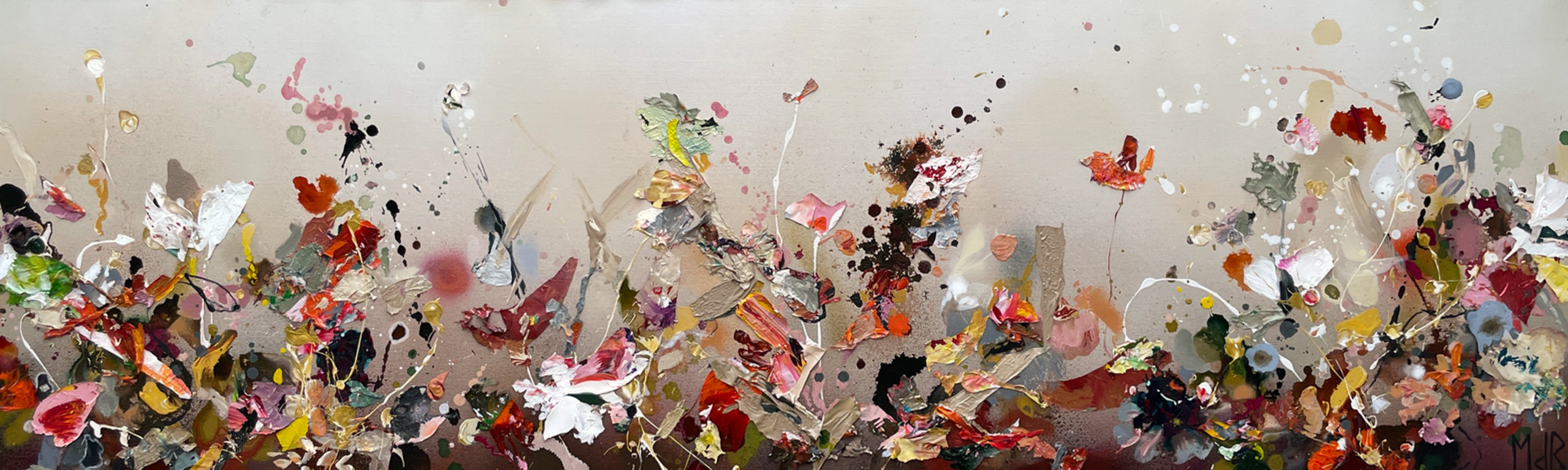 Acryl & paletstukken op linnen, met witte baklijst.