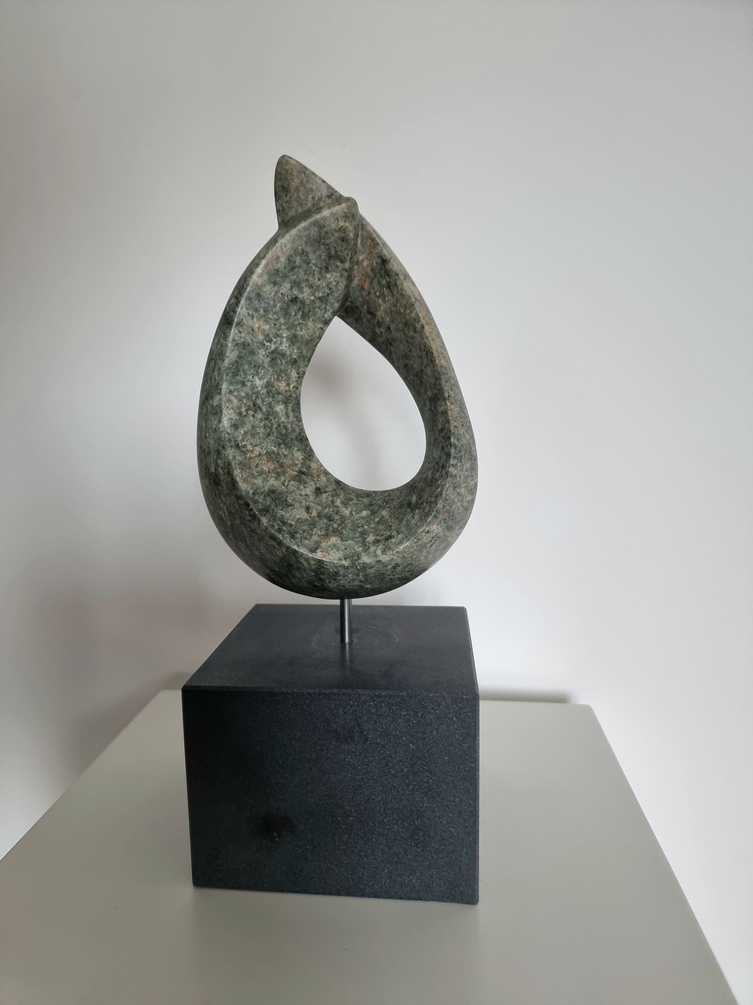 Speksteen op graniet matte sokkel. Op mijn andere website zijn nog meer fotos van het beeld te zien www.carosbeelden.com