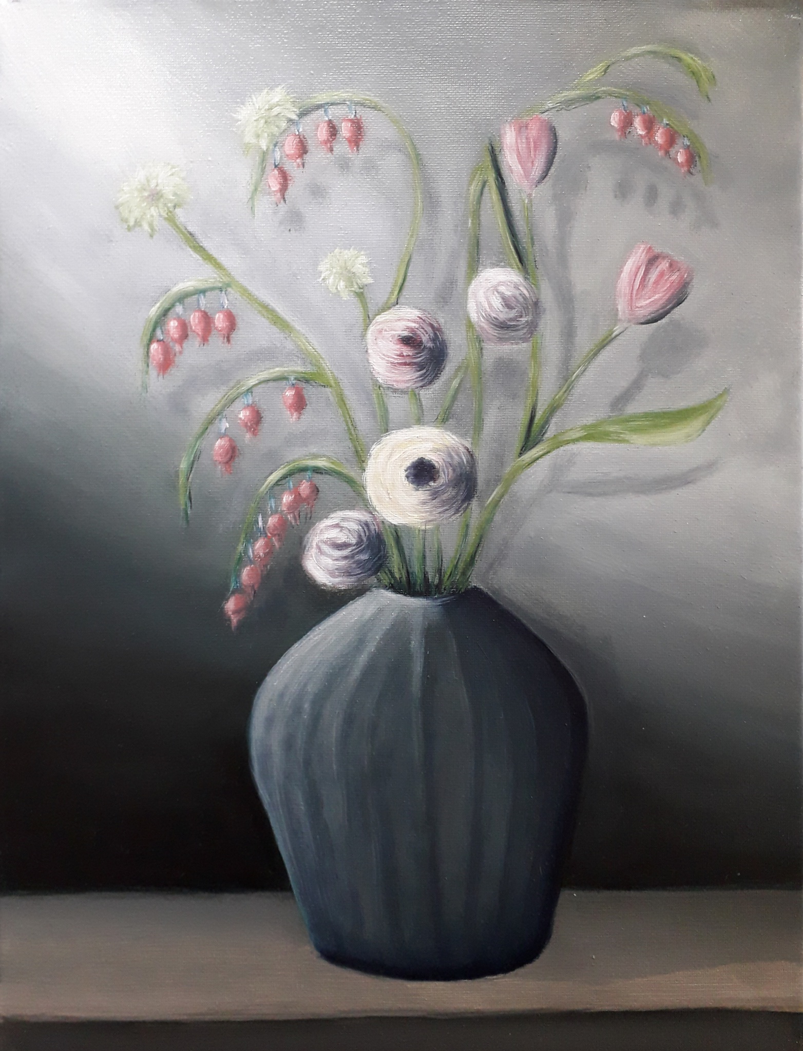 Schilderij Olieverf Stilleven Bloemen Boeket