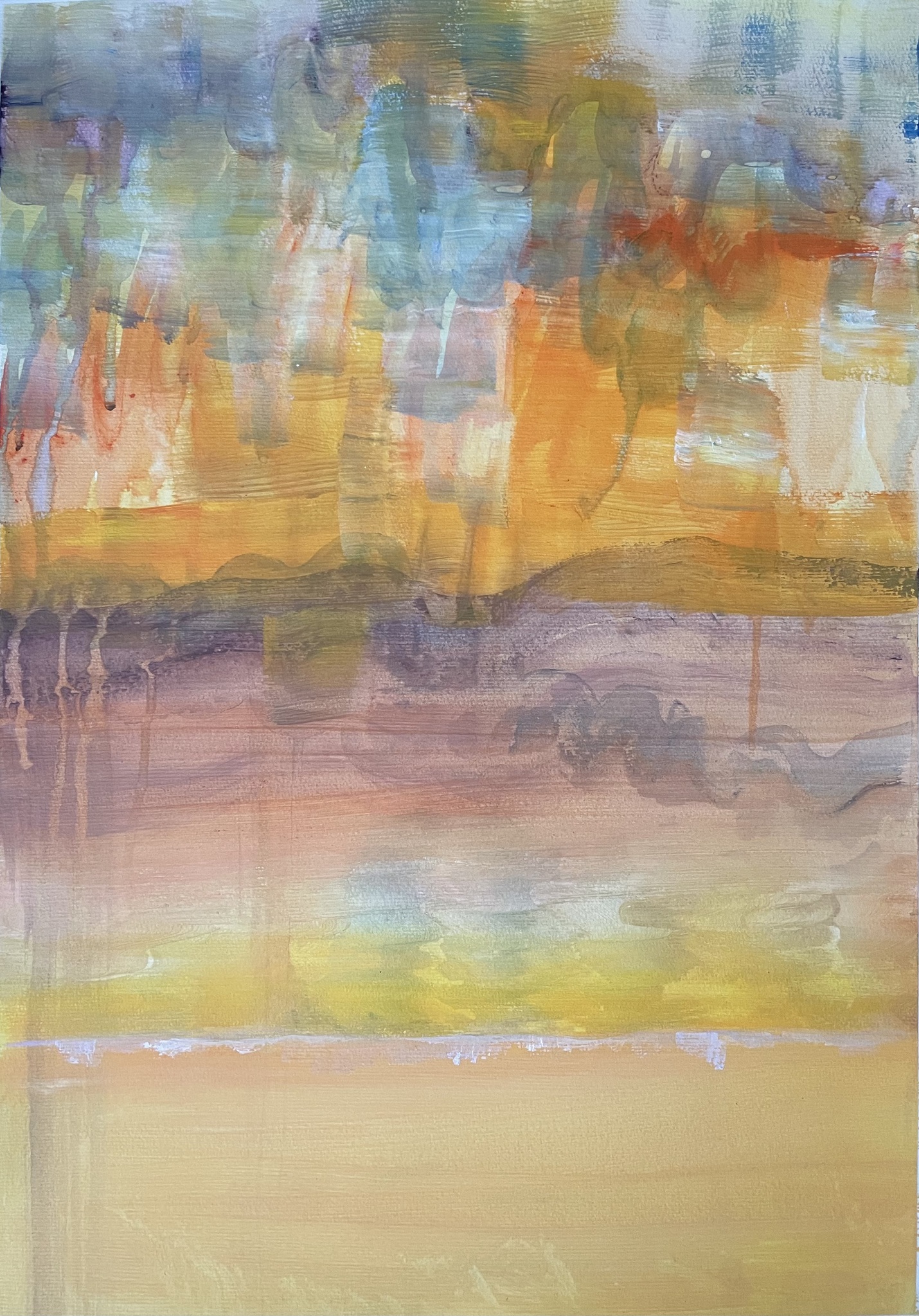 Dit werk is in een vlotte, intuïtieve schilderbeweging ontstaan. Zonder vooropgezet plan liet ik kleur en vorm elkaar vinden, geleid door gevoel en moment. Het resultaat is een beeld dat spontaan ademt: direct, levendig en eerlijk — precies zoals het in het creatieve proces is ontstaan.
