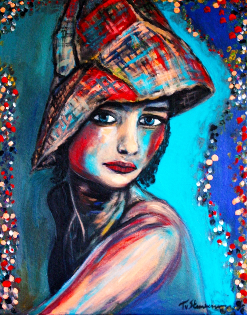 leuk kleurrijk portret van meisje met hoed, hangt nu in Frankrijk. www.artmemory.nl hier kun je en spel komen met kunstwerken op memorykunstkaartjes o.a.met dit portret er op , niet duur!