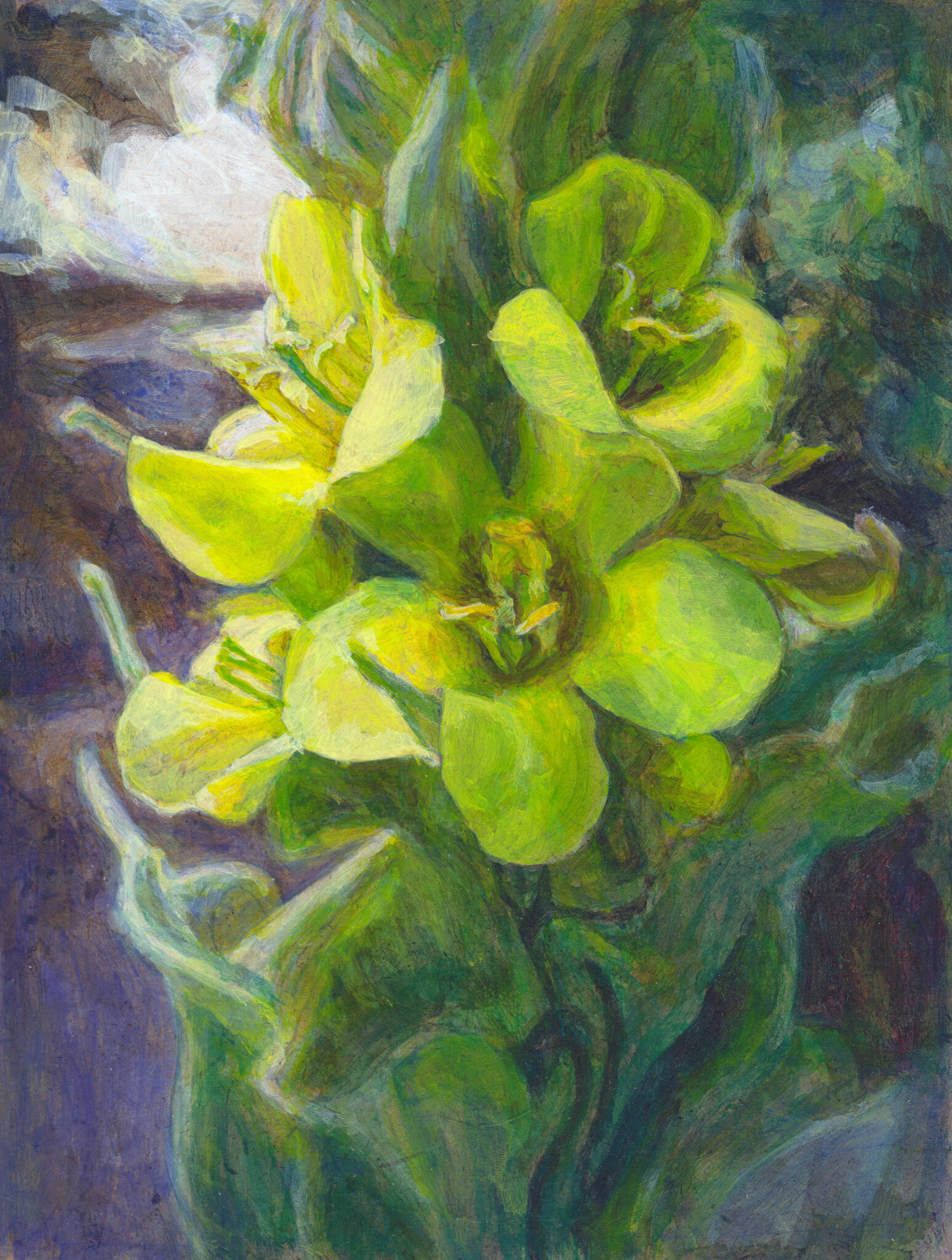 Kleine charmante werken op paneeltjes vaak A4-formaat. Portretten, bloemen, stillevens van fruit, glaasjes, doorkijken in het bos, een zicht met wachtende figuren….