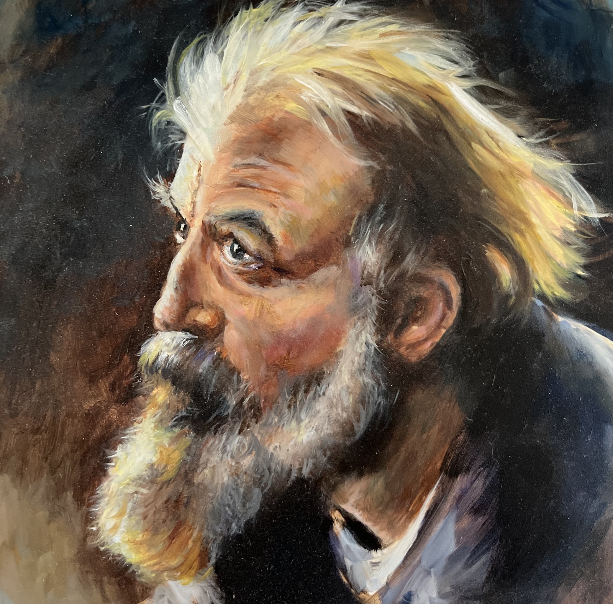 Oude man olieverf op paneel 20x20 cm