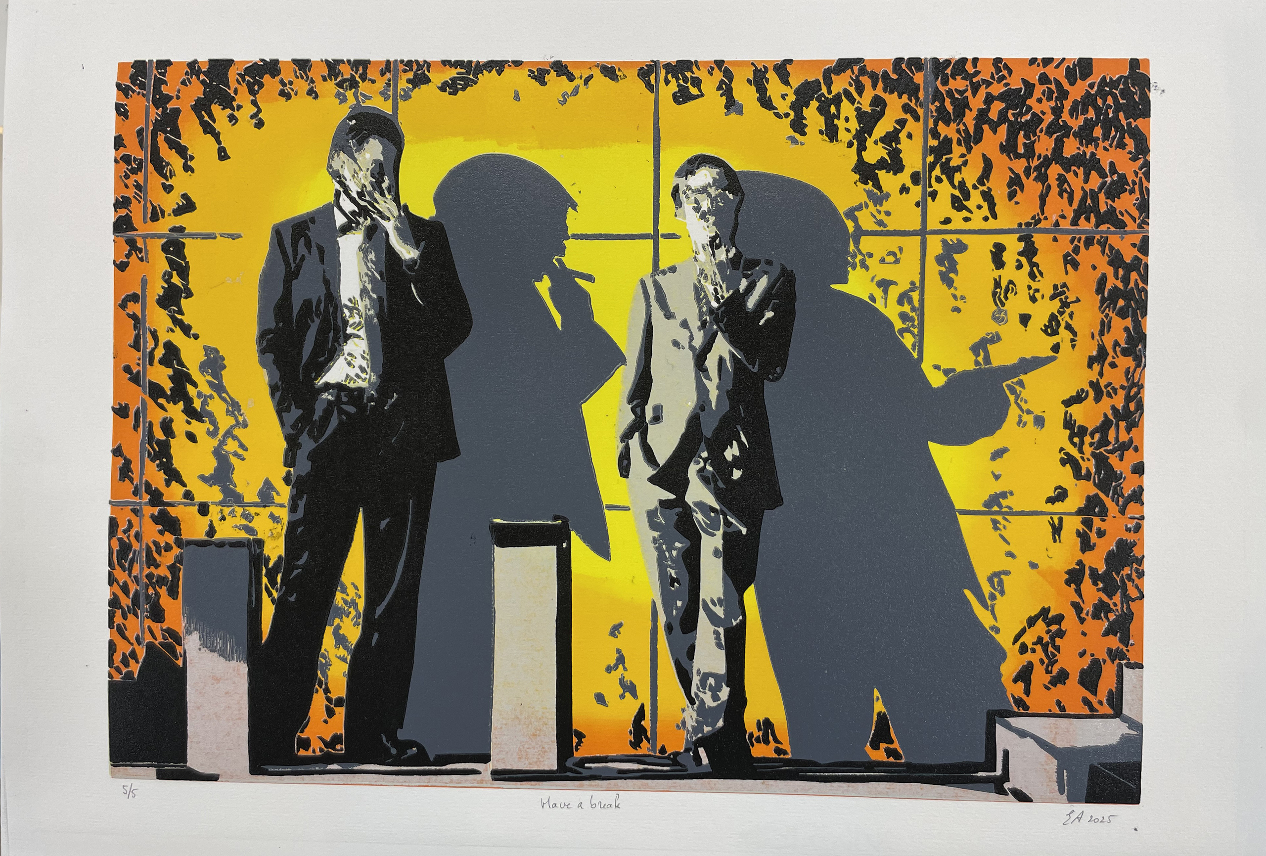Ik ben linokunstenaar in Gorssel. Mensen in interactie inspireren me. Ik kies beelden van straat, theater en film. Foto’s helpen me om scherp te kijken, tot keuzes te komen.