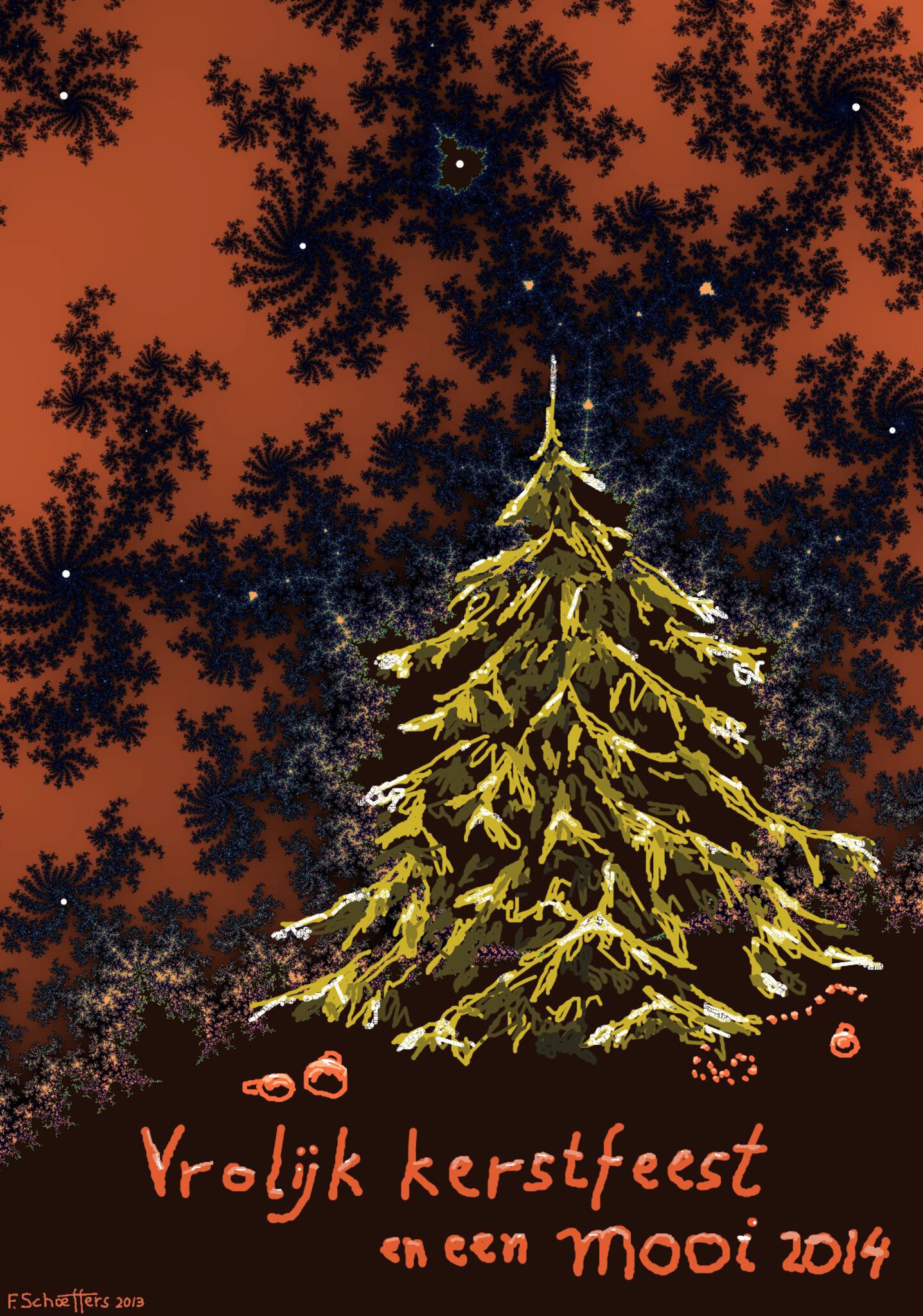 Kerstkaart met Mandelbrot. Digitaal. Afdruk op posterpapier op aanvraag, uiteraard met jaartal-aanpassing.